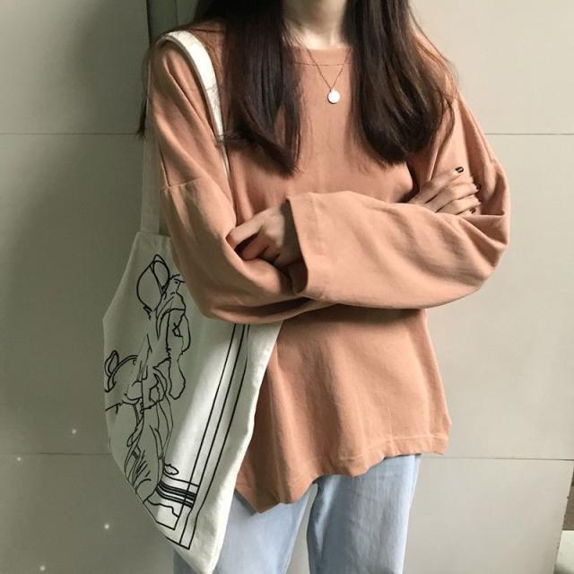 ロンT レディース オーバーシルエット くすみカラー tシャツ 長袖 春秋 ゆったり 無地