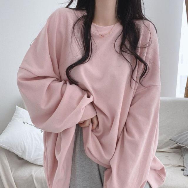 ロンT レディース Tシャツ 体型カバー トップス 長袖 無地 春 秋 学生 大人 可愛いったり 韓国風