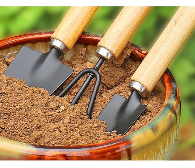 ガーデンツールセット 木製ハンドル 多肉植物 多用途 寄せ植え 観葉植物 小型 鉢植え 植栽ツール ガーデニング用品 3点セット 除草 草抜き 庭園作業
