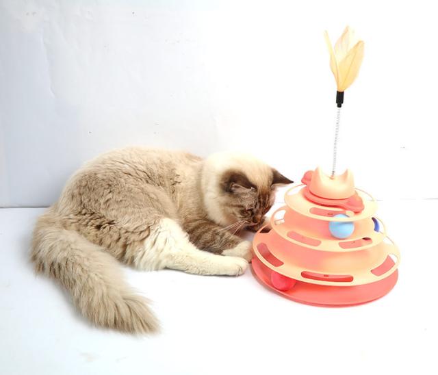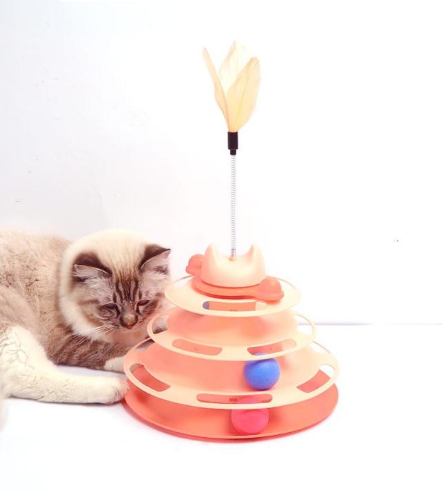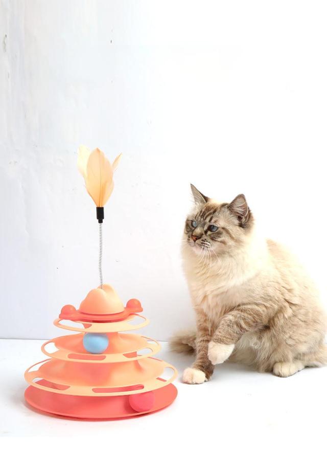 猫のおもちゃ ボール 猫じゃらし付き 猫用品 タワー ボール回転盤 回転タワー ぐるぐるボール 一人遊び 留守番 ストレス解消 運動不足解消 ペット用品