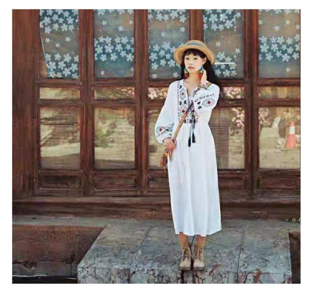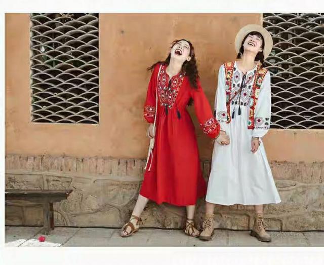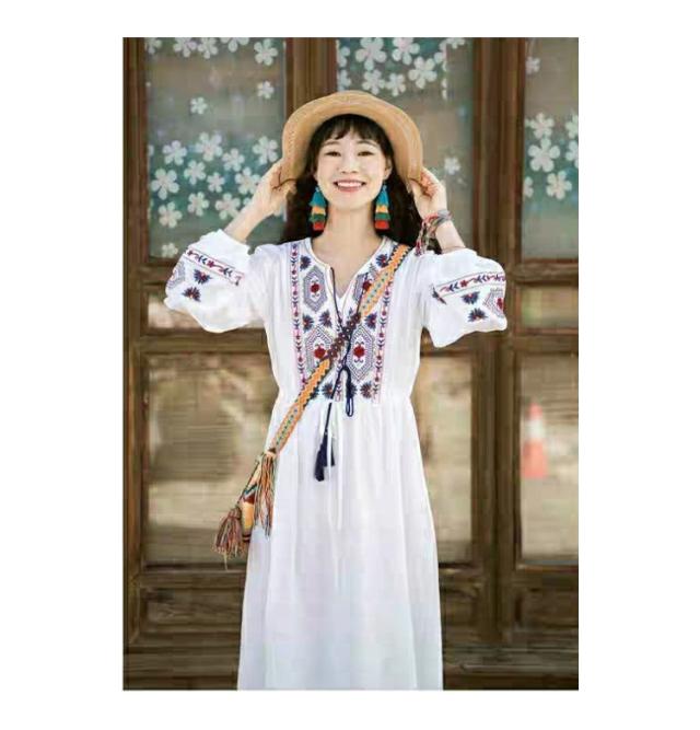 ロングワンピース マキシ丈 花柄 ワンピース 綿 ロング ワンピ 民族風 エスニック風 長袖 ゆったり 体型カバー Aライン マキシワンピース