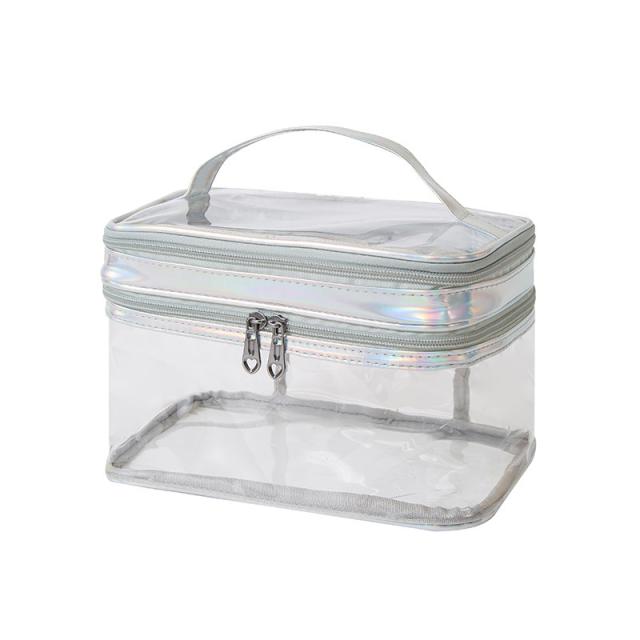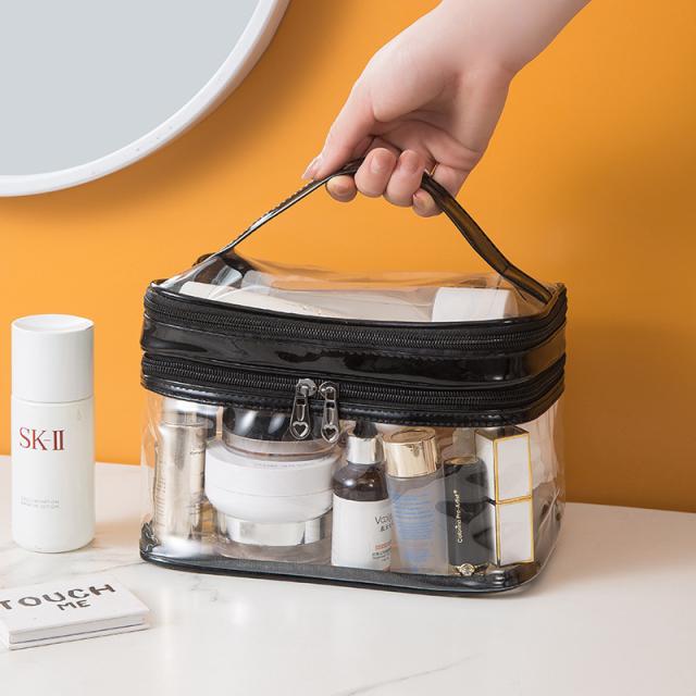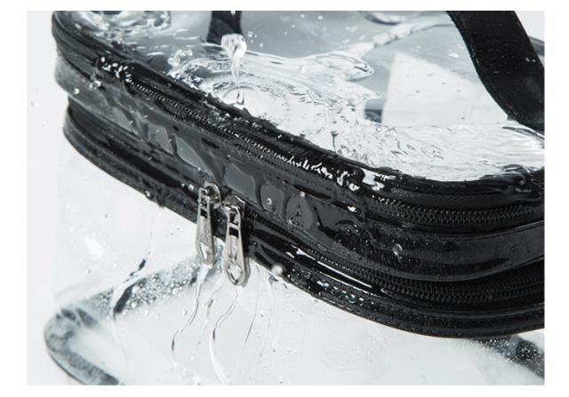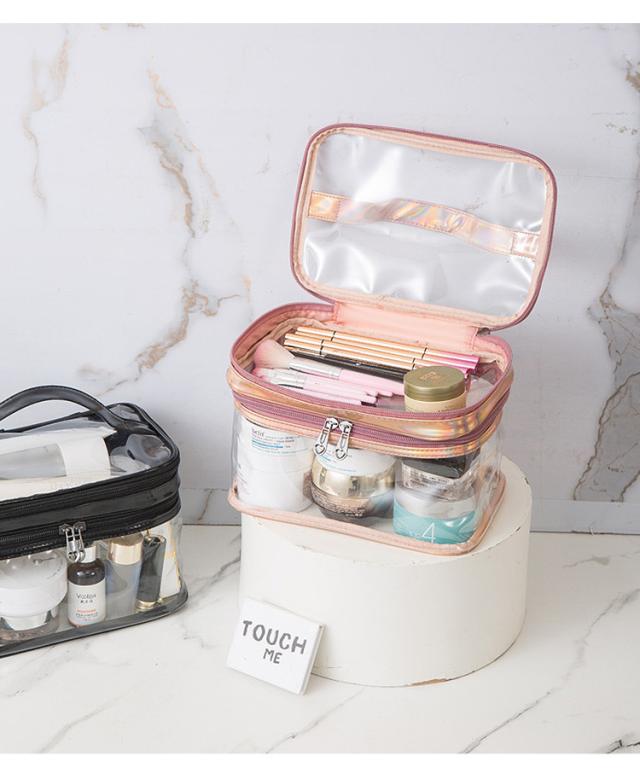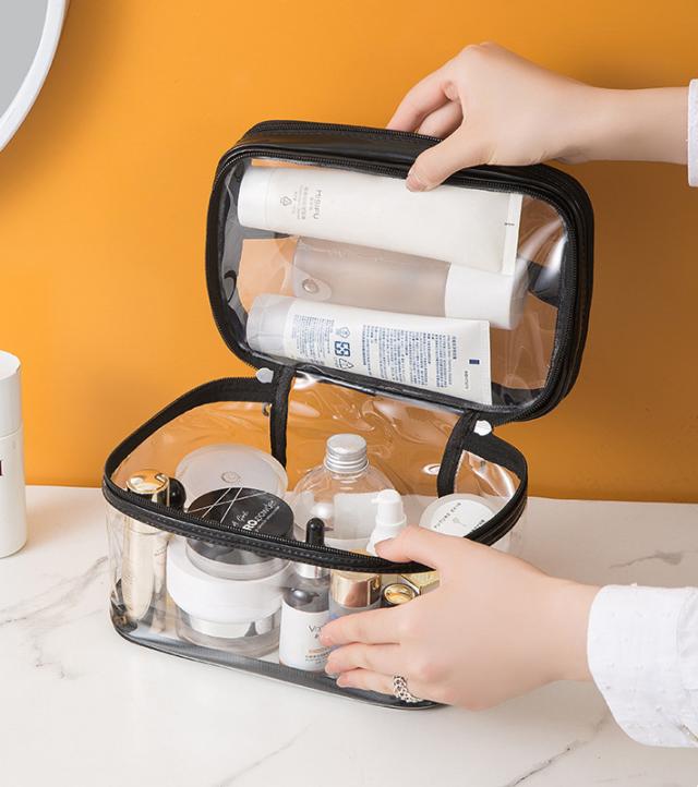 化粧ポーチ PVC 透明 2段 クリアポーチ 撥水 メイクポーチ 防塵 便利 プール 旅行 出張 おしゃれ かわいい