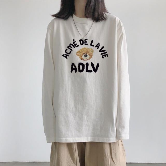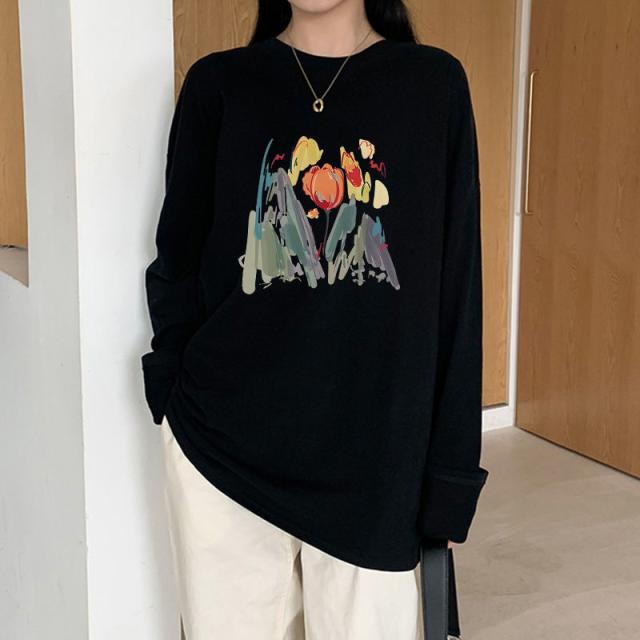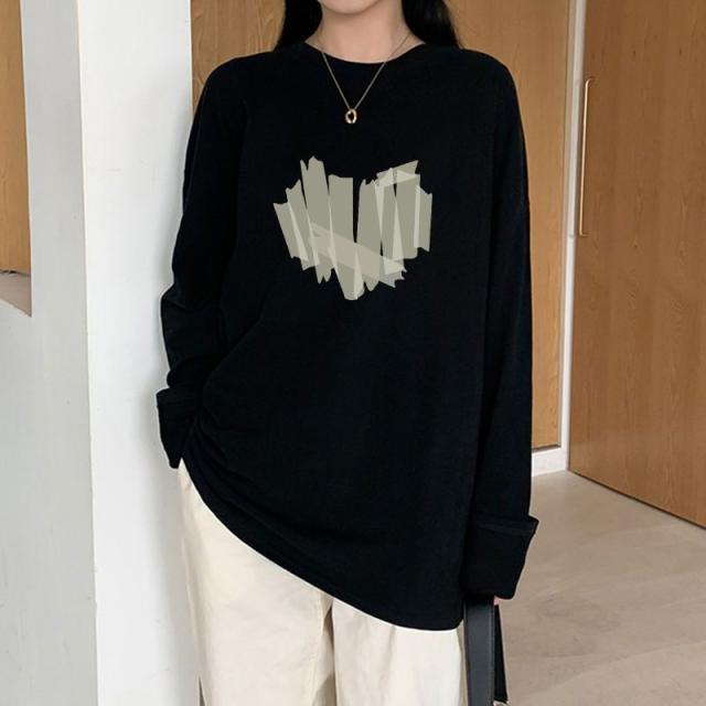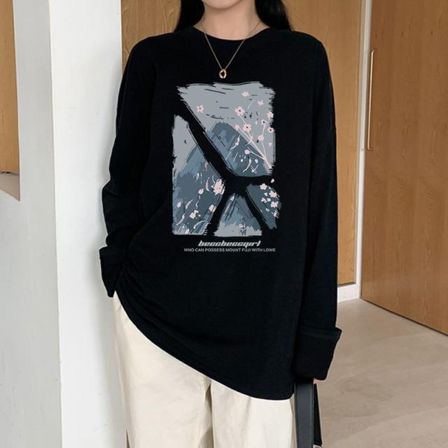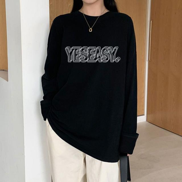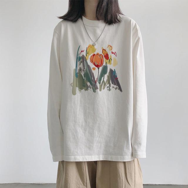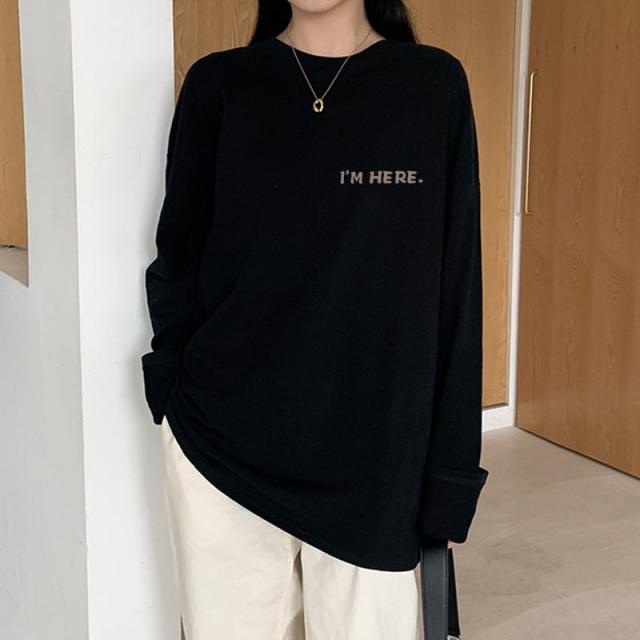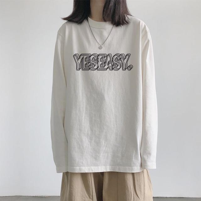 ロンT レディース トップス カットソー ロゴ ロングTシャツ 柄 ロンT ボリューム袖 コットン サイドスリット入り 長袖 ロゴTシャツ
