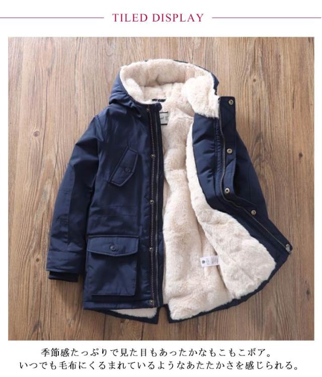 コート キッズ モッズコート ジャケット 裏ボア 中綿コート 裏起毛 子供服 アウター ミドル丈 フード付き コート 男の子 女の子 こども服 ジュニア 冬 あったか 防寒 かわいい おしゃれ 無地 冬 110cm 120cm 100cm 130cm 140cm 150cm 160cm 通学 通園 プレゼント 送料無料