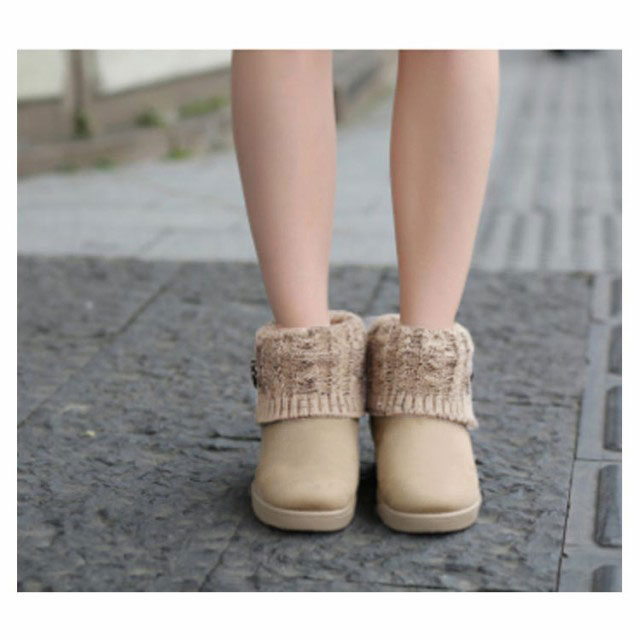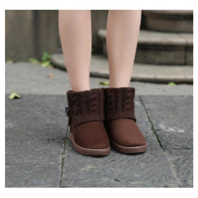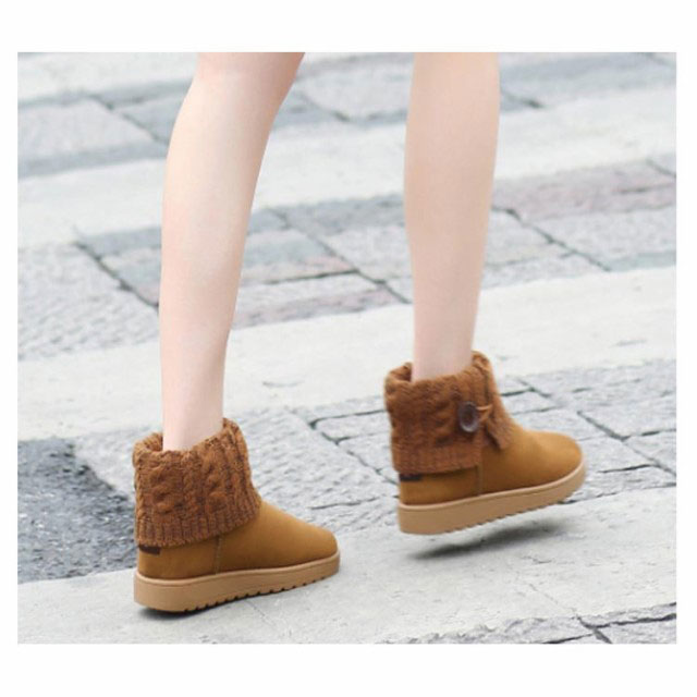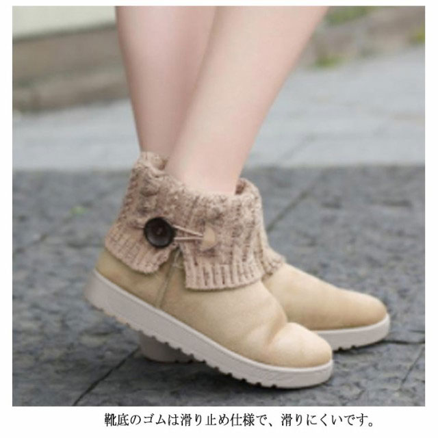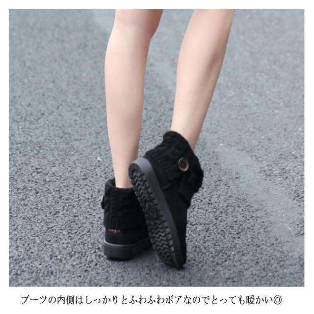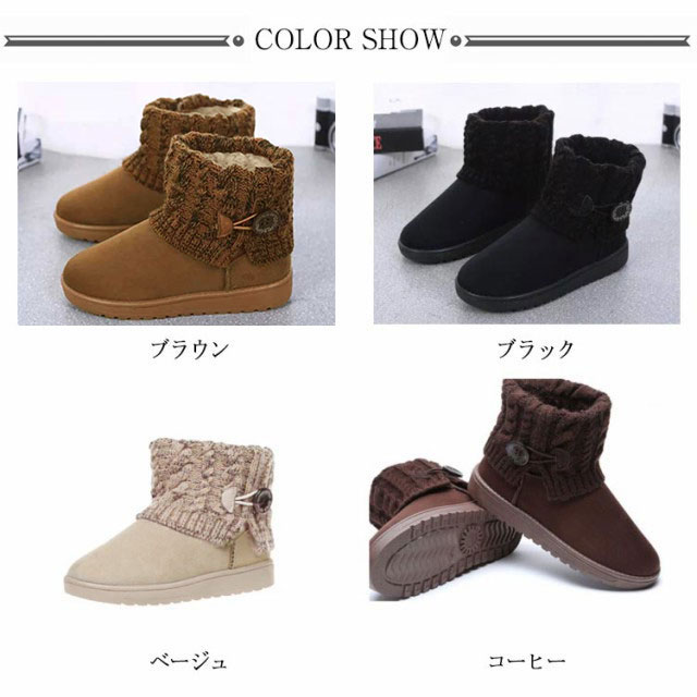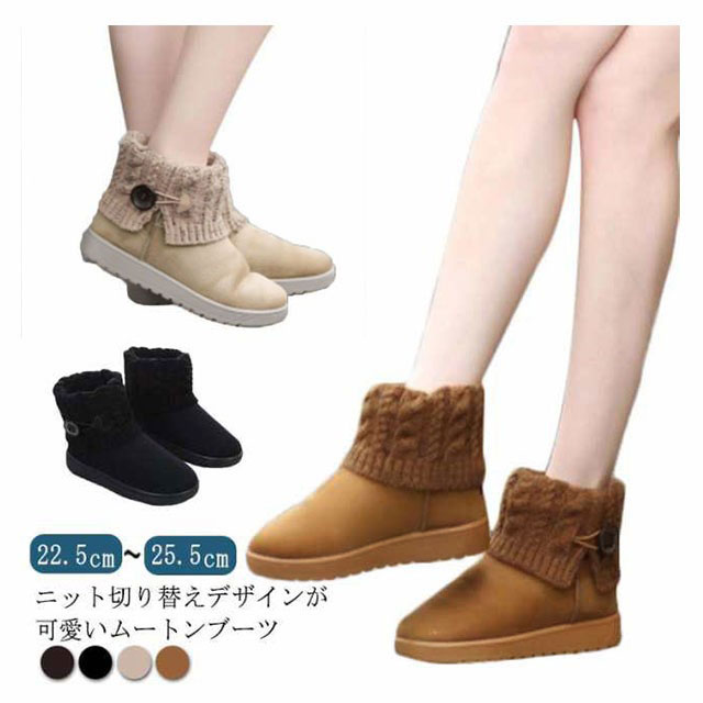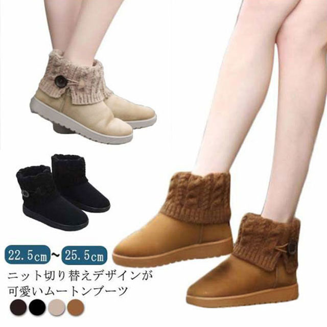 ショートブーツ ムートンブーツ ムートン調 ケーブルニット編み 折り返しデザイン レディース もこもこムートンブーツ 女性 裏起毛 フェイクファー 合成革 合成底 暖かい 秋 冬 全4色
