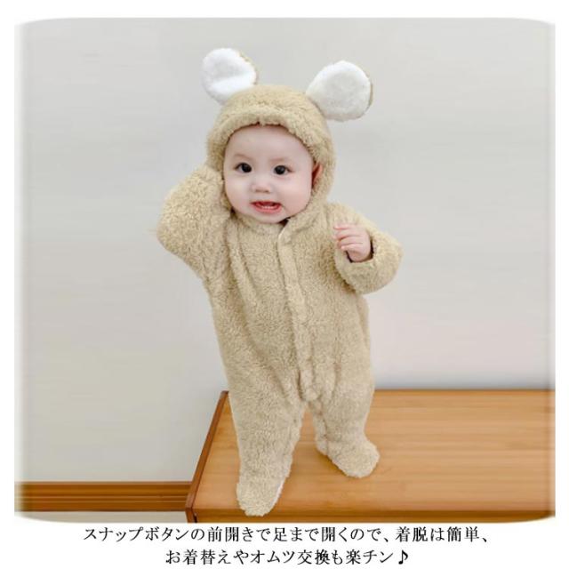 出産祝い ロンパース きぐるみ オーガニックコットン くまさん 赤ちゃん くま カバーオール ジャンプスーツ ベビー服 新生児 男の子 女の子 女子 男子 プレゼント 冬 秋 防寒 着ぐるみ 59 66 73 80