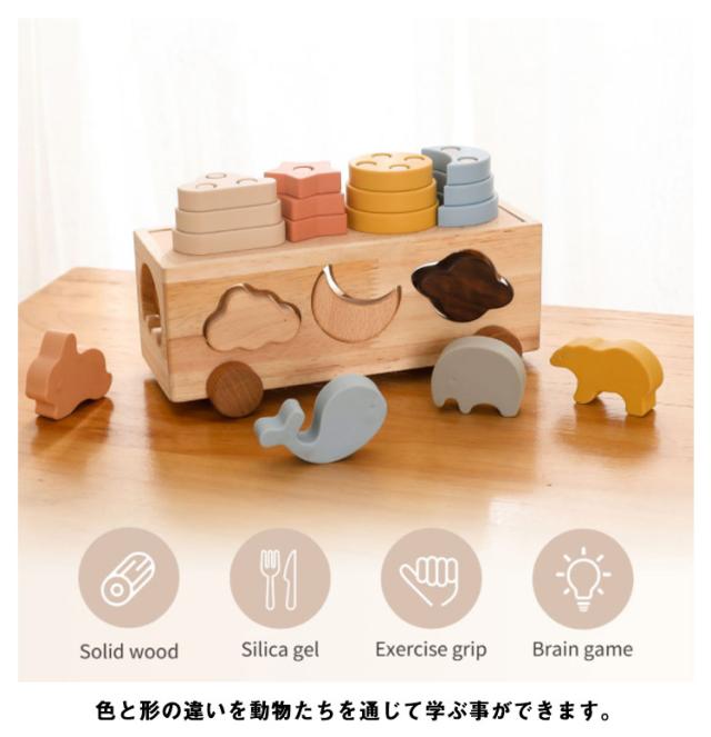 | 大人気の木製アニマルパズルバスです。遊び方いろいろ!1−3歳適用。 木のおもちゃは、お子様が本来持っている「創造力」「考える力」「五感」「好奇心」を刺激し、育むことができる知育玩具。 色と形の違いを動物たちを通じて学ぶ事ができます。 天然木は木のぬくもりを感じられるあたたかな質感が安心感を与えます。 かたち合わせ遊びなど、お子様の創造力を刺激する遊びがいっぱい! 考えながらも遊べますし、指先への刺激もいっぱい詰まった知育玩具です。 とっても楽しいおもちゃなので、出産祝いの贈り物にもぴったりです♪ | |
