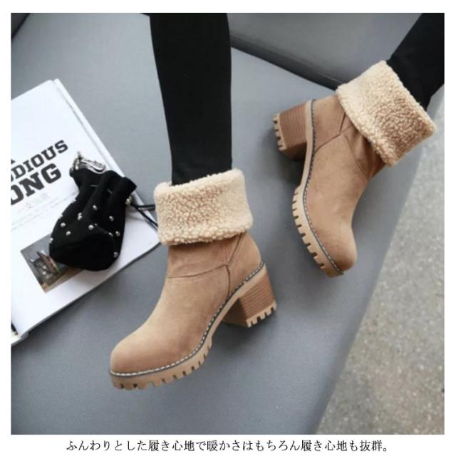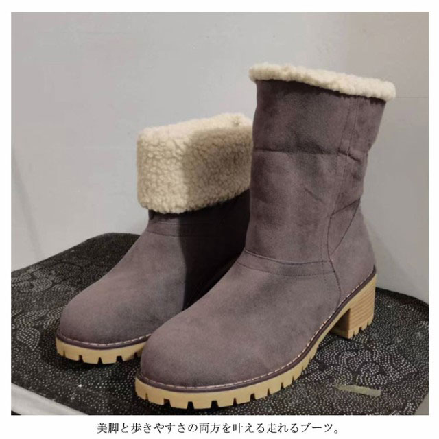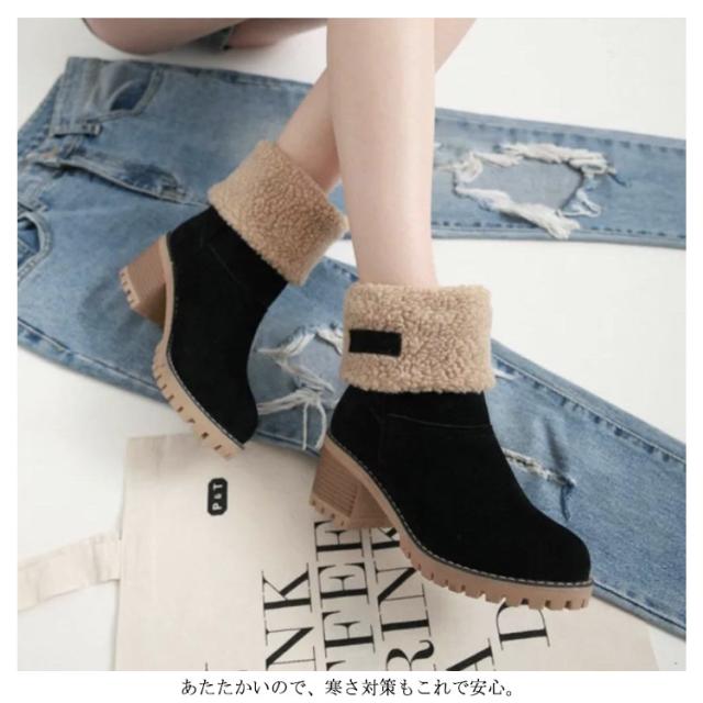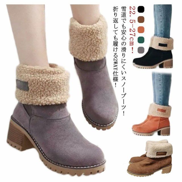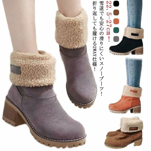スノーブーツ レディース ムートンブーツ ブーツ ウインターブーツ ショートブーツ ミディアムブーツ 2way 防滑 裏起毛 防寒 雪 靴 滑らない あったか ムートン カジュアル チャンキーヒール ラウンドトゥ 通学 通勤 履きやすい 22.5-27cm
