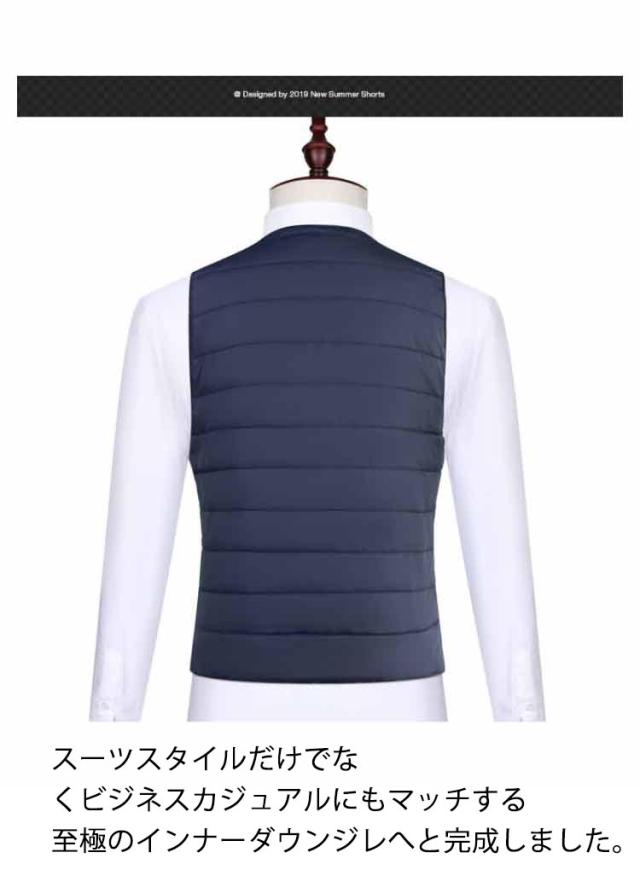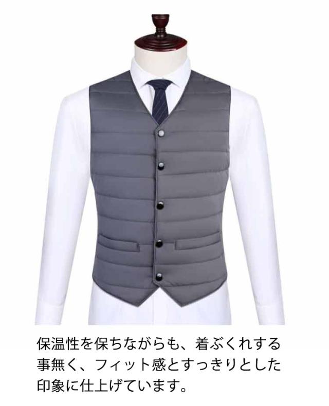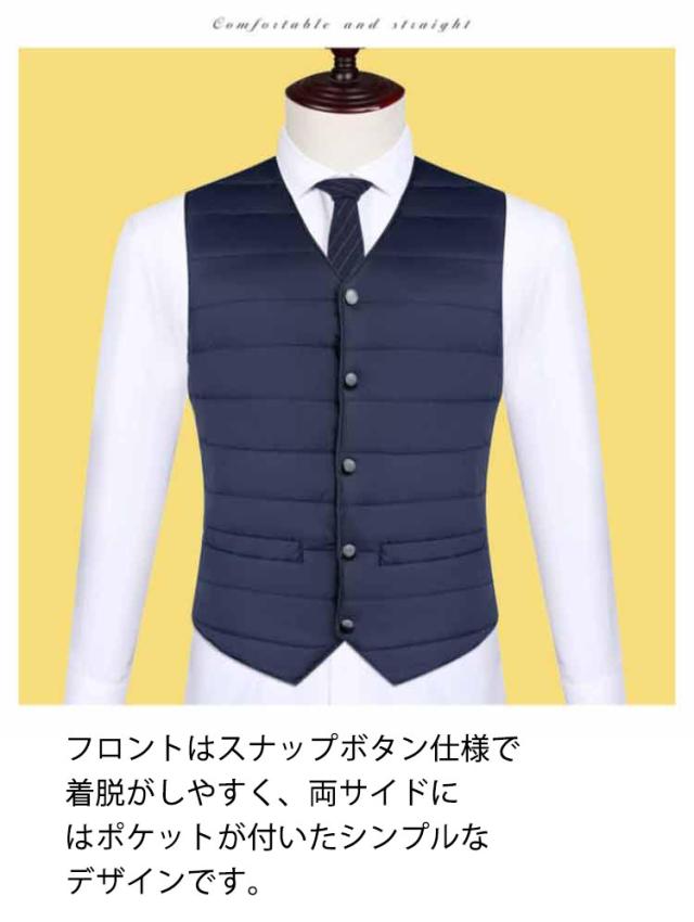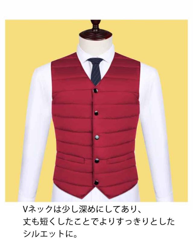 インナーダウン ベスト メンズ ダウンベスト 軽量 防寒 Vネック ボタン スーツベスト ライトダウン ベスト スリム 軽量 薄手 秋冬 防寒 保温 冬用 冬服 カジュアル フォーマル あったか フェイクダウン ブラック グレー ネイビー レッド