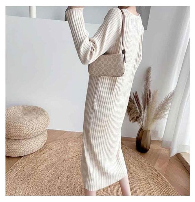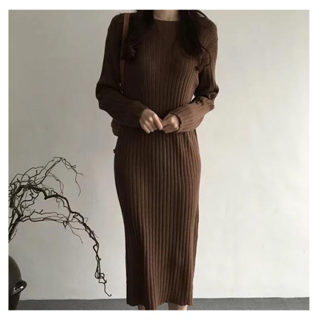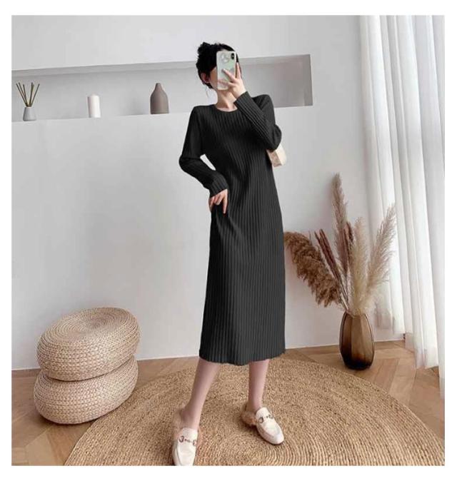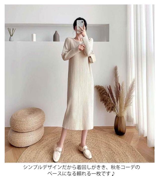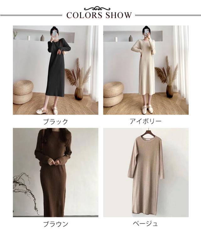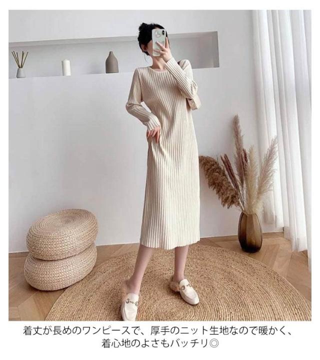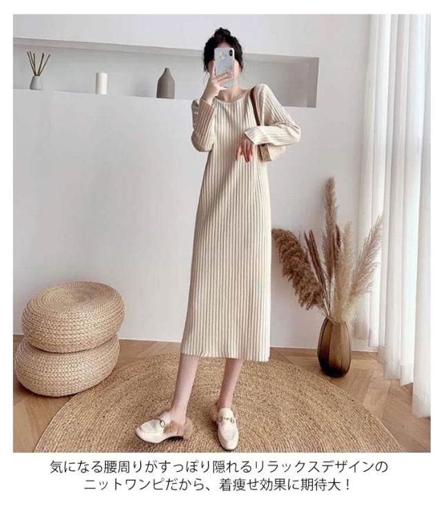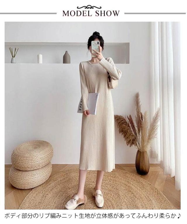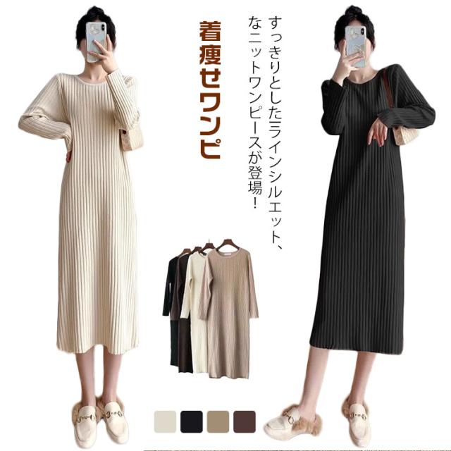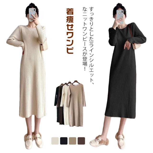ニットワンピース ニット ロングワンピース ニット ワンピースマキシ丈ワンピース リブニット 秋 冬 ロング きれいめ カジュアル 無地 長袖 体型カバー 着痩せワンピ フェミニン プリーツ おしゃれ ミセス 大人