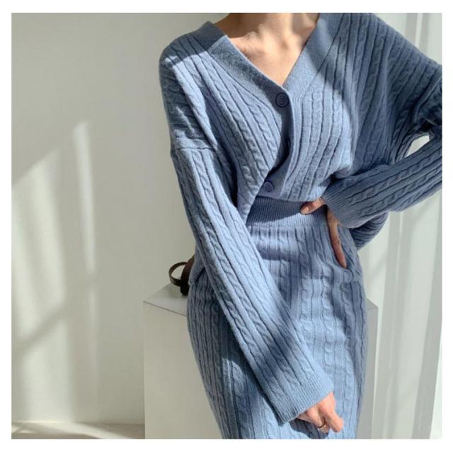 | ゆる可愛いシルエットのカーディガンとタイトスカートのセットアイテム。 ふんわりと暖かいみニットを使用。シンプルなデザインで着回しも抜群。 メリハリラインを強調し、華奢な女性らしさを演出できます。 | |