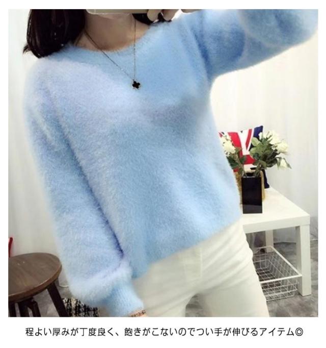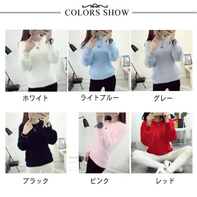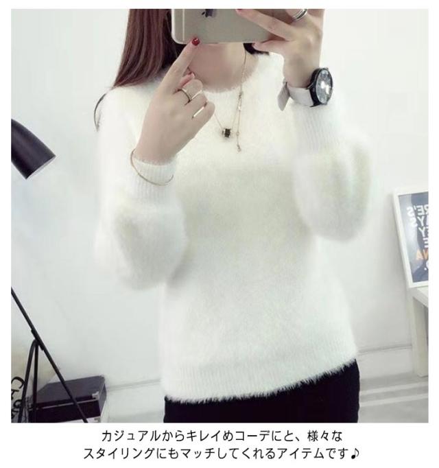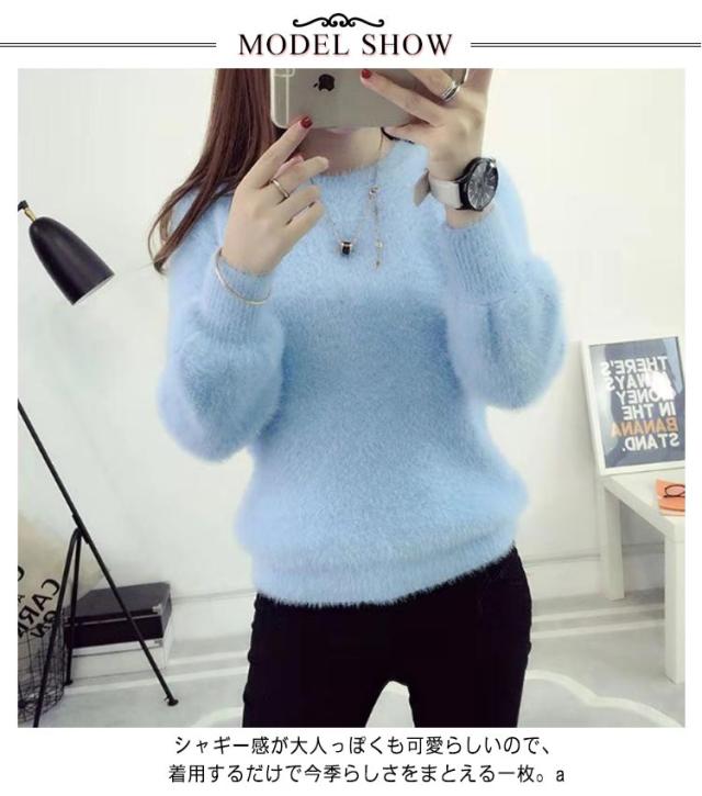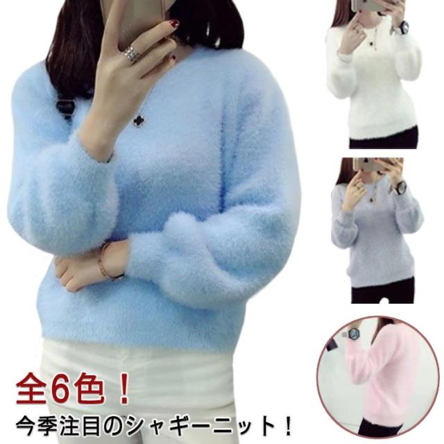 ニットセーター セーター レディース シャギーニット モヘア ニット 長袖 セーター プルオーバー ニットソー インナー 秋 冬 厚手 防寒 暖かい 無地 ふわふわ もこもこ トップス 柔らかい おしゃれ きれいめ 送料無料