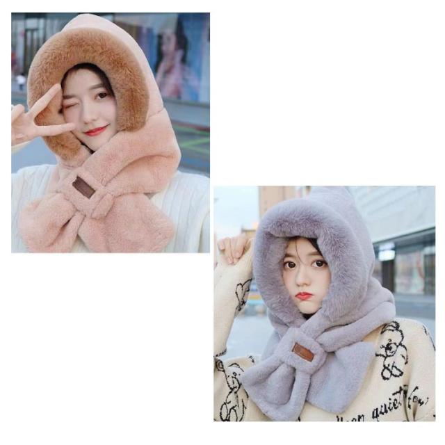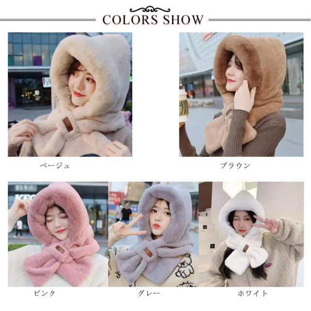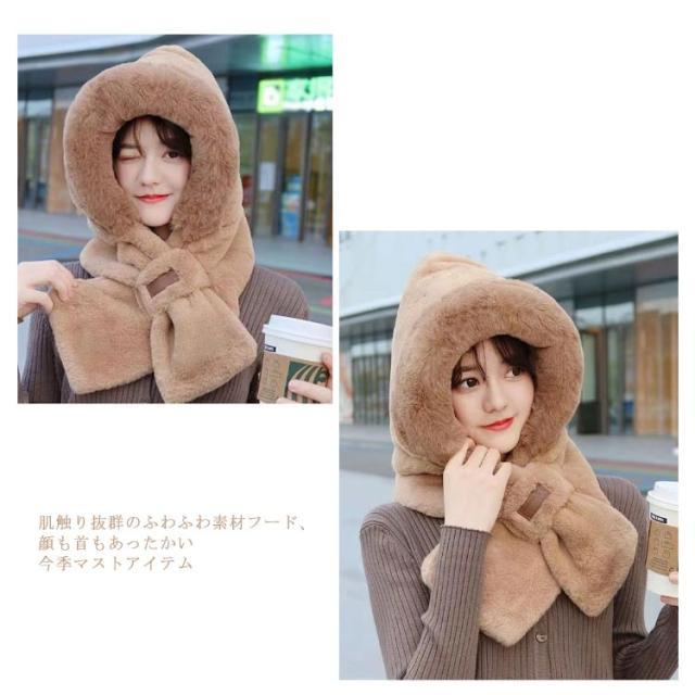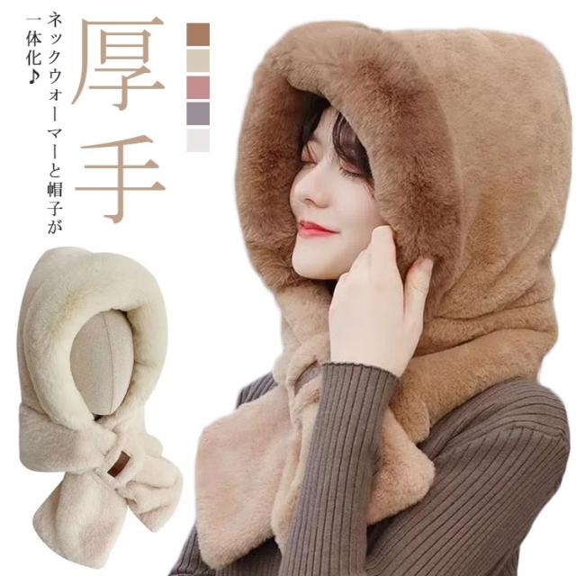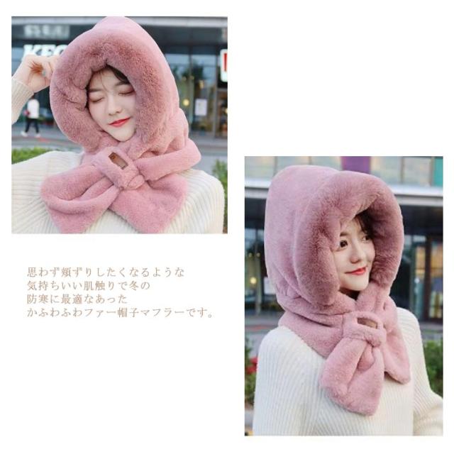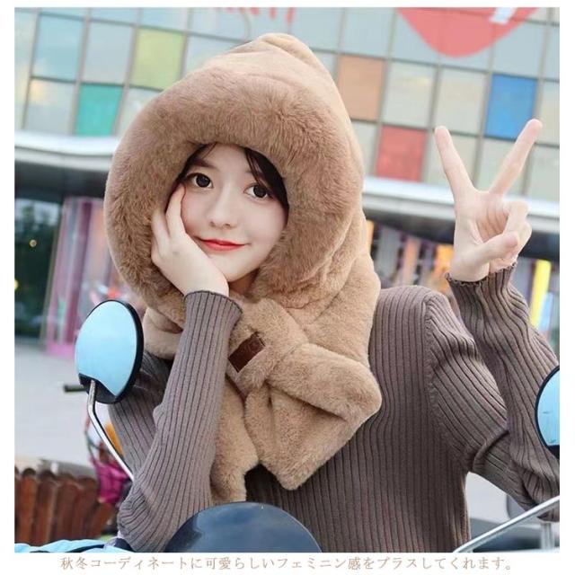 マフラー 帽子 冬 レディース 一体化マフラー フェイクファー ふわふわ 可愛い もこもこ フード付き ネックウォーマー ストール 防寒 厚手 ボア 暖かい小物 秋冬 帽子 無地 防寒対策 軽い 静電気防止 送料無料 スヌード かわいい エコファー 冬用