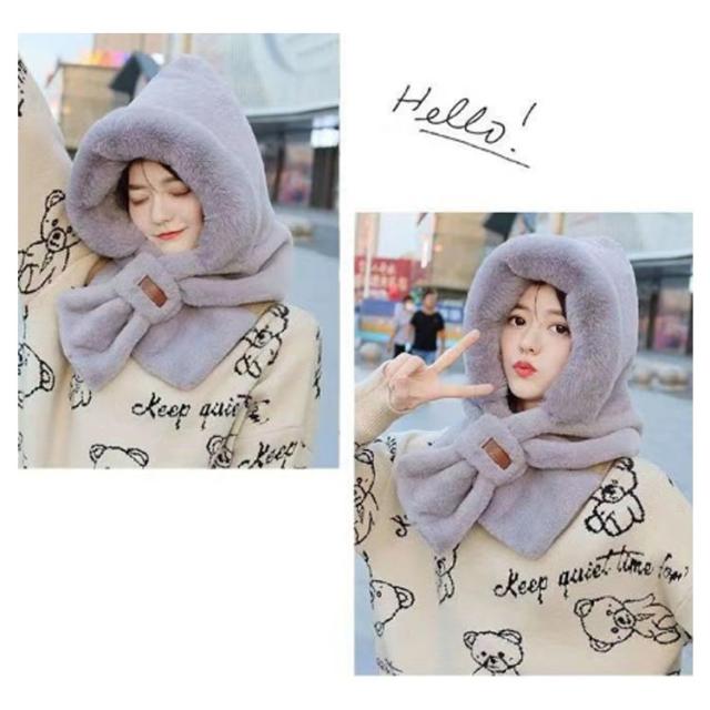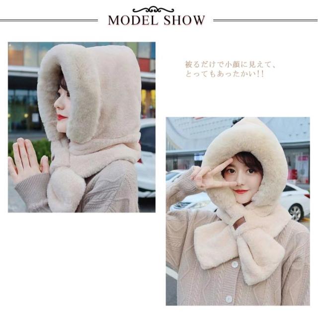 | ネックウォーマーと帽子が一体化♪ 被るだけで小顔に見えて、とってもあったかい!! 肌触り抜群のふわふわ素材フード、顔も首もあったかい今季マストアイテム 秋冬コーディネートに可愛らしいフェミニン感をプラスしてくれます。 思わず頬ずりしたくなるような気持ちいい肌触りで冬の防寒に最適なあったかふわふわファー帽子マフラーです。 | |