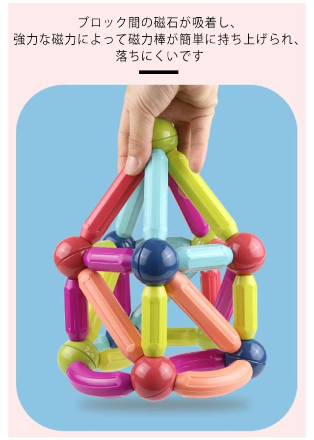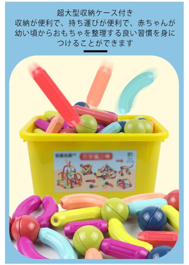 | 安全で環境にやさしい素材で製作され、赤ちゃんの手作業能力を鍛え、思考力を開発します 360°回転マグネット吸着 ブロック間の磁石が吸着し、強力な磁力によって磁力棒が簡単に持ち上げられ、落ちにくいです 超大型収納ケース付き 収納が便利で、持ち運びが便利で、赤ちゃんが幼い頃からおもちゃを整理する良い習慣を身につけることができます | |