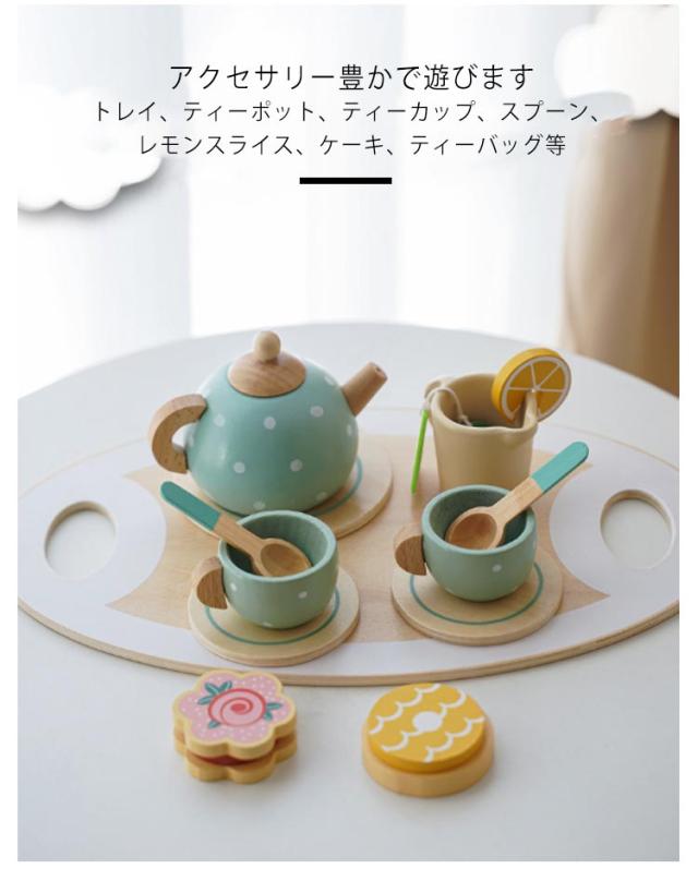 木製 おままごとセット ティーパーティー ごっこ遊び ミニキッチン キッチンおもちゃ お茶パーティーセット 木製 知育玩具 女の子 お菓子 お茶 プレゼント 誕生日 子供 幼児 知育 室内遊び 室内玩具 おうち時間 子ども こども 2歳 3歳 4歳
