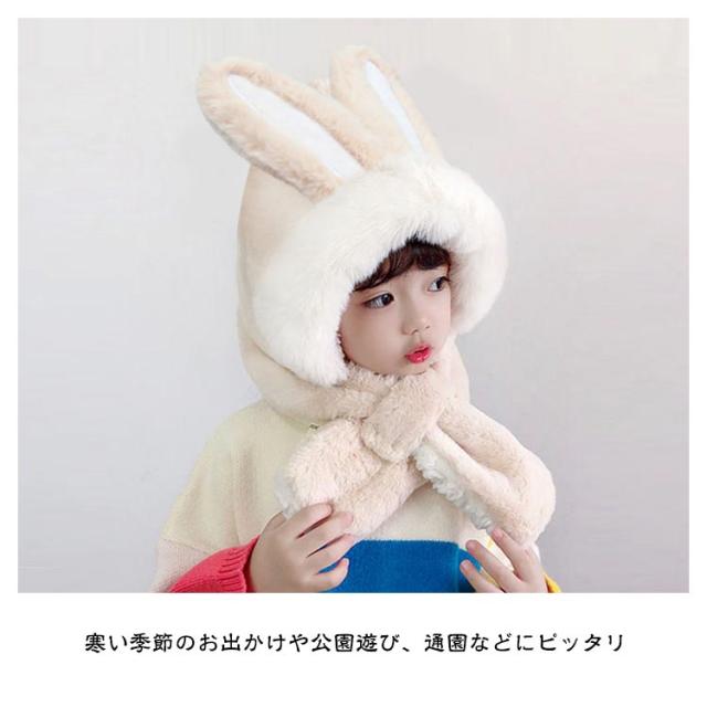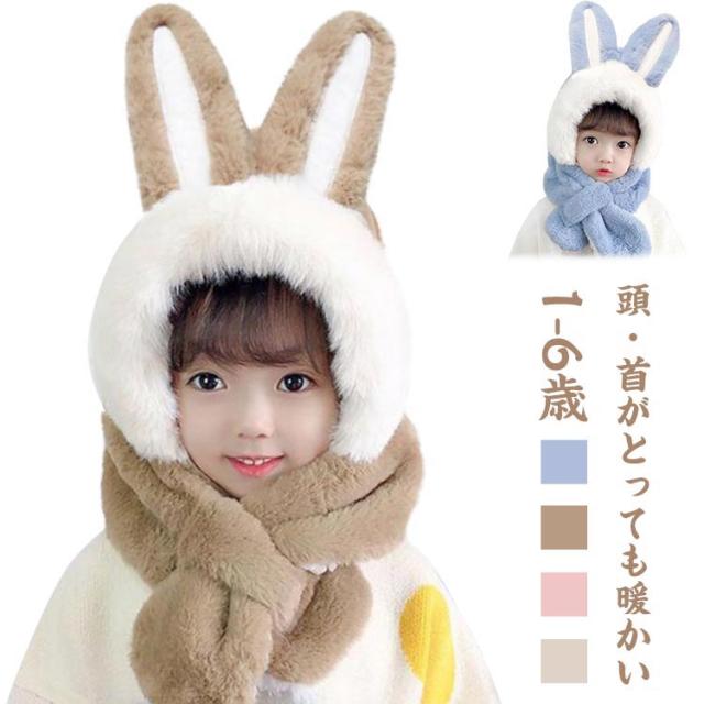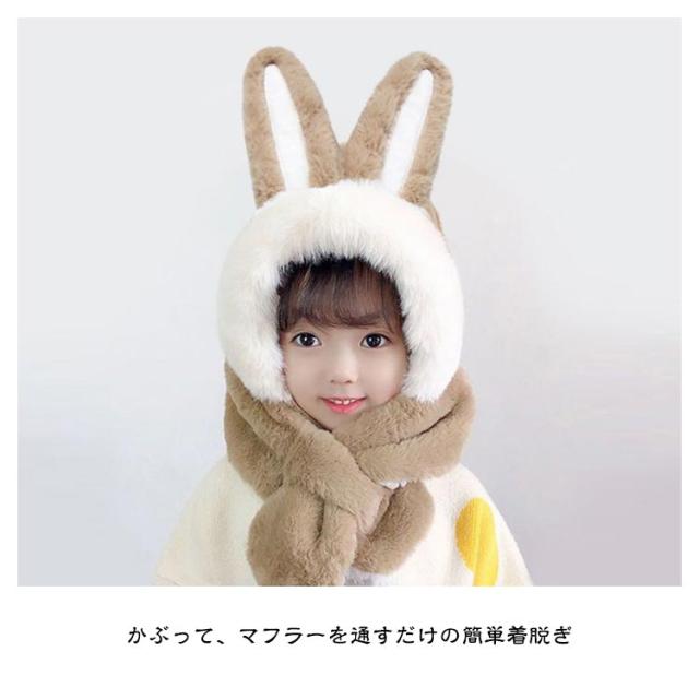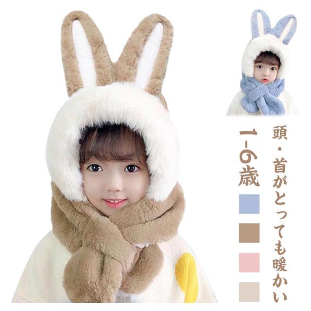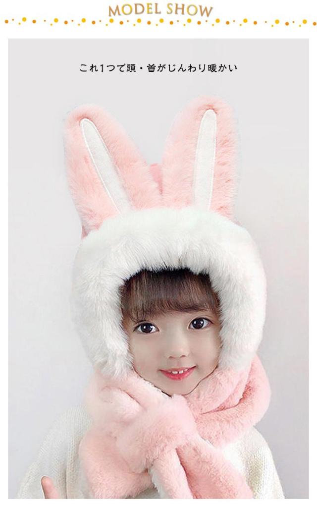 フードウォーマー ネックウォーマー 防寒 キッズ 帽子 うさ耳 可愛い うさぎ ふわふわ フェイクファー 送料無料 着脱簡単 ぬくぬく 年賀状撮影 干支 卯 兎