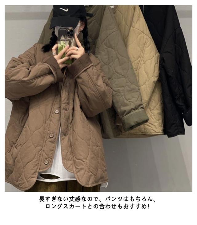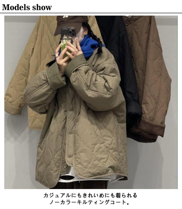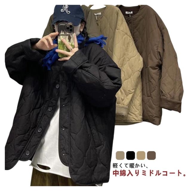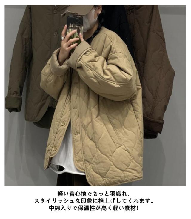 キルティングジャケット レディース 中綿ジャケット 中綿 キルティング コート ジャケット 中綿コート ノーカラー ジャケット キルト ブルゾン 秋 冬 アウター 羽織り あたっか 防寒 大人 きれいめ ゆったり 韓国 ファッション おしゃれ カジュアル