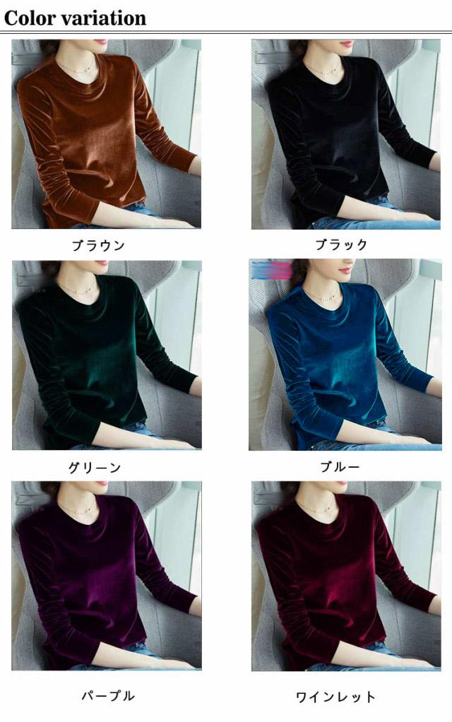 ベロア Tシャツ カットソー ベルベット レディース トップス きれいめ ストレッチ 長袖 tシャツ クルーネック スリム 大きいサイズ 大人 通勤 オフィス カジュアル シンプル 無地 春 秋 冬 重ね着 着やせ 韓国ファッション レトロ 着回し