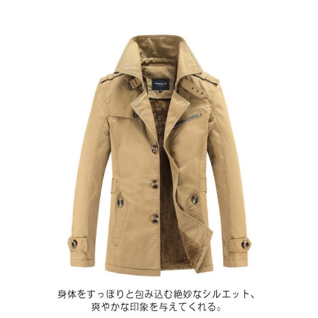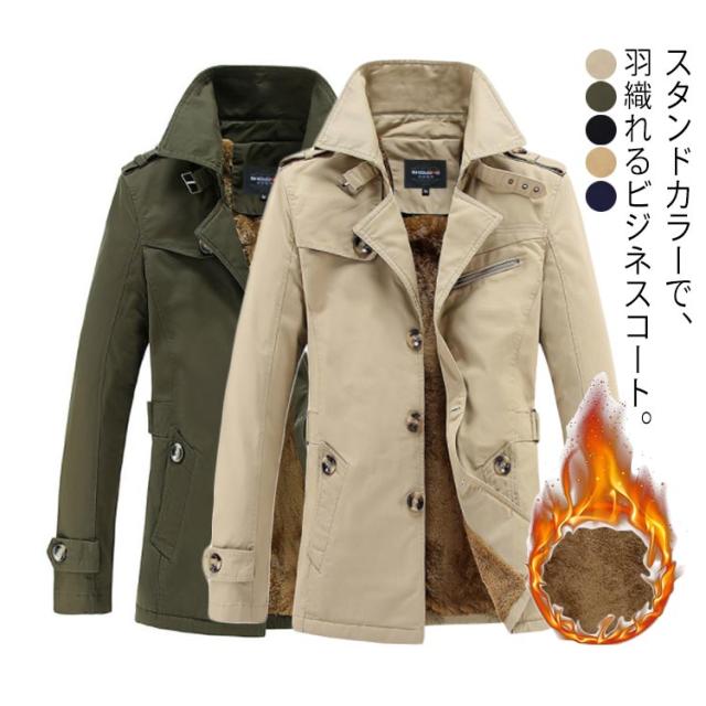 裏起毛 コート メンズ トレンチコート スプリングコート 綿 ビジネスジャケット メンズコート ジャケット フォーマル 無地 長袖 着痩せ 通勤 ビジネス カジュアル メンズファッション かっこいい M L XL 2XL 3XL 4XL 5XL