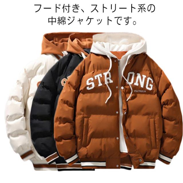 フェイクレイヤード 中綿ジャケット メンズ スタジャン ジャケット フード付き 秋冬アウター 中綿コート 大きいサイズ レディース ゆったり おしゃれ 防風 ストリート系 アメカジ M L XL 2XL 3XL 4XL
