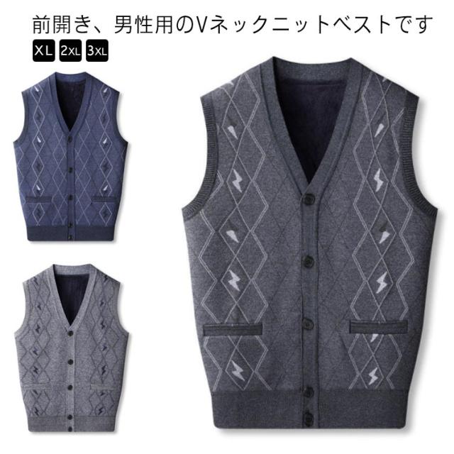 ニットベスト 裏起毛 メンズ 前開き Vネック ニットセーター セーター ニットトップス ノースリーブ スーツ セーター カーディガン ジレ お洒落 ビジネスベスト 暖かい カジュアル 体型カバー XL 2XL 3XL