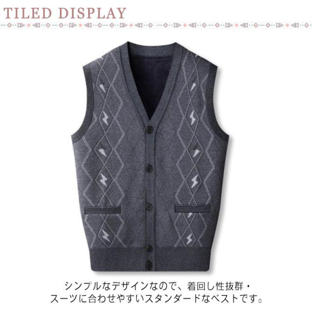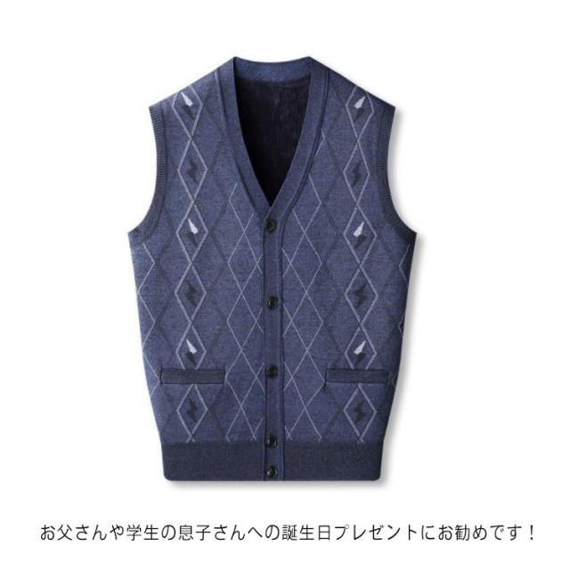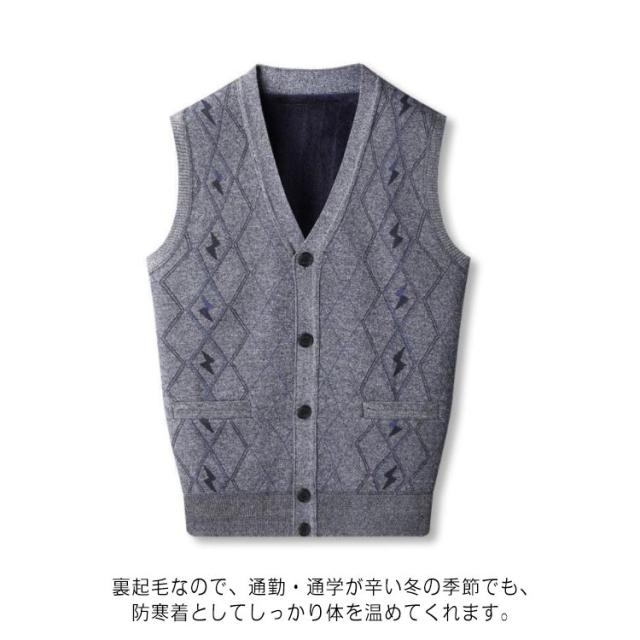 | 前開き、男性用のVネックニットベストです シンプルなデザインなので、着回し性抜群・スーツに合わせやすいスタンダードなベストです。 伸縮性に優れ、よく伸びるので、動きにくさを感じさせません。 裏起毛なので、通勤・通学が辛い冬の季節でも、防寒着としてしっかり体を温めてくれます。 寒さ対策にもぴったりの一枚です! お父さんや学生の息子さんへの誕生日プレゼントにお勧めです! | |
