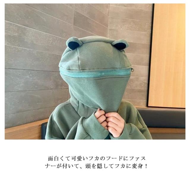 裏起毛 キッズパーカー パーカー 送料無料 かえる 子供服 ロング トレーナー 萌え 動物 蛙 フード付き プルオーバー パーカ トップス キッズ 女の子 男の子 ジュニア ゆったり スウェット カジュアル 大きいサイズ 子ども 学生 110 120 130 140 150 160cm
