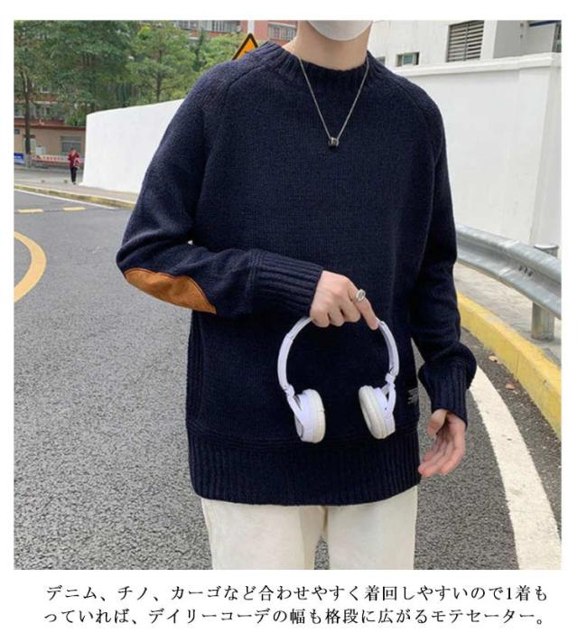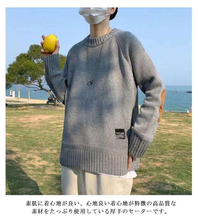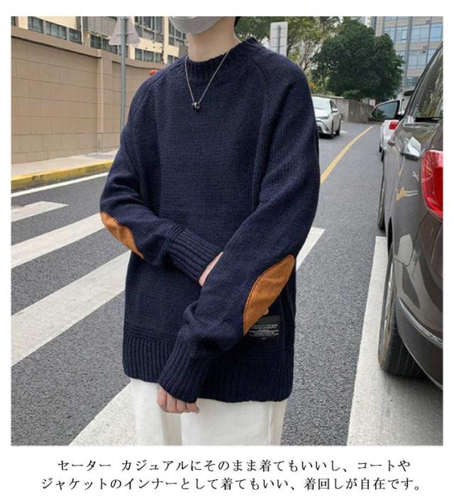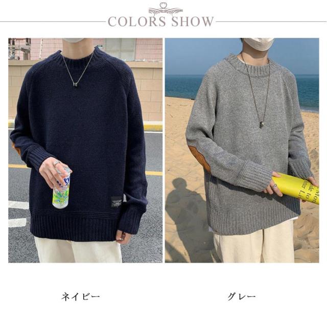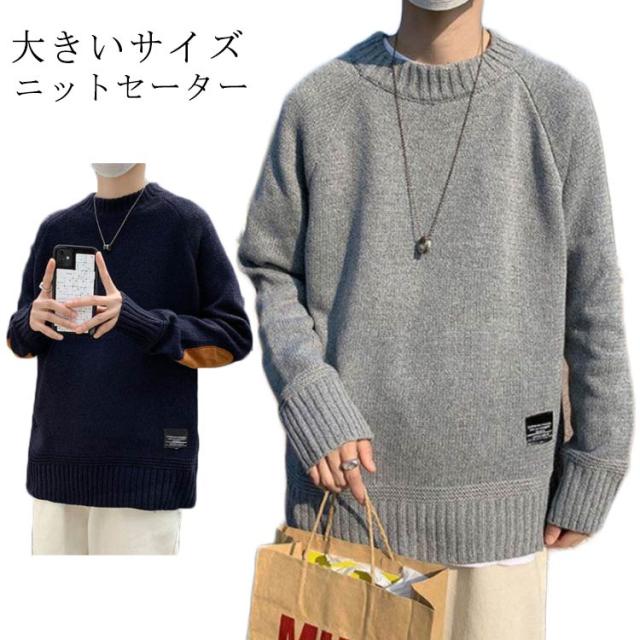 ニットセーター メンズ プルオーバー セーター トップス 長袖 切り替え 大きいサイズ 起毛 カジュアル シンプル 無地 ゆったり 体型カバー お洒落 カジュアル 送料無料