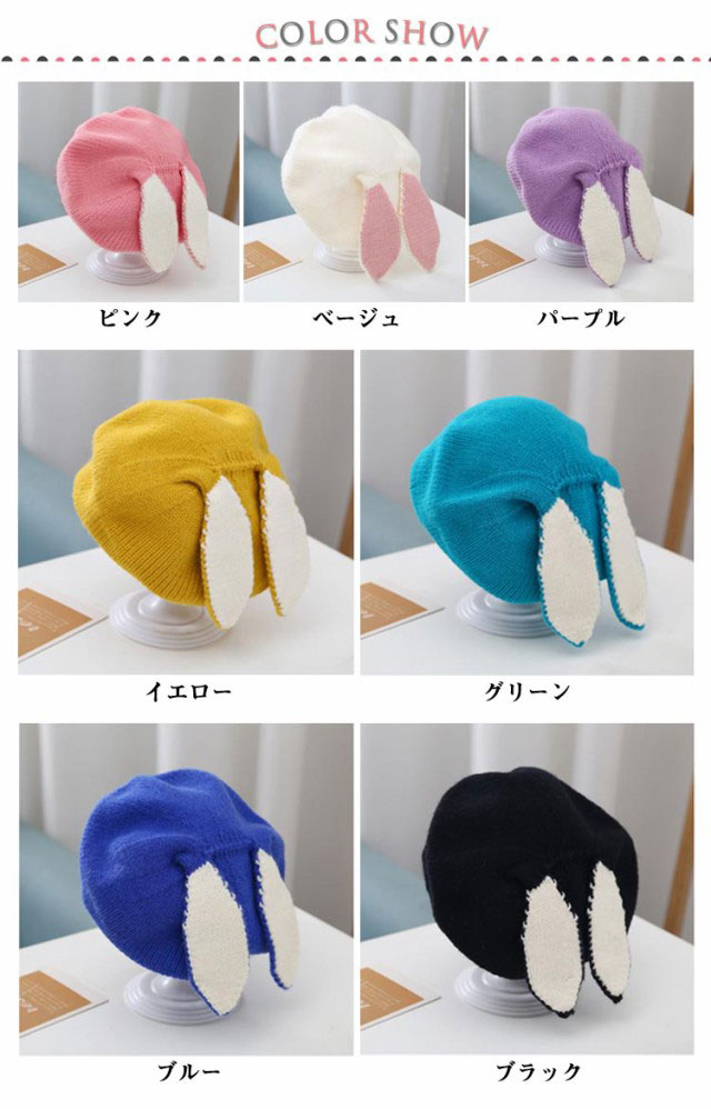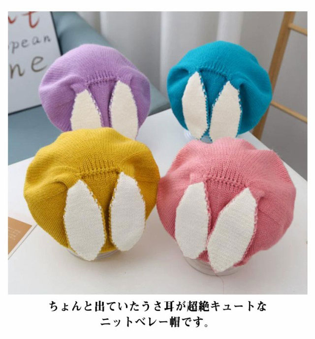 子供帽子 耳付き うさ耳 ニット ベレー帽 ウサギ耳 ベビー帽 コスチューム ウサ耳 ウサギ 兎 耳 かわいい 女の子 ガーリー 秋 冬 出産祝い