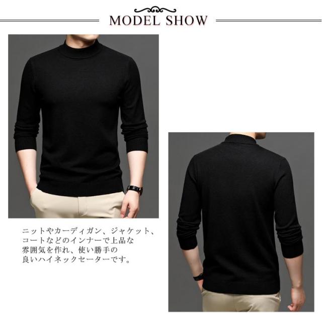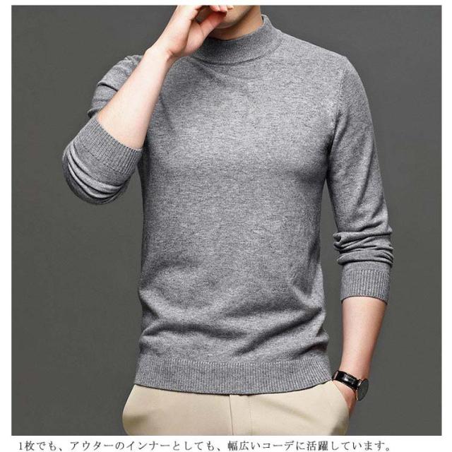| 肌寒い季節に定番のニットハイネックセーター ニットやカーディガン、ジャケット、コートなどのインナーで上品な雰囲気を作れ、使い勝手の良いハイネックセーターです。 1枚でも、アウターのインナーとしても、幅広いコーデに活躍しています。 締め付けなくハイネックのデザイン、一枚でも暖かい、これからの季節に活躍してくれます。 シンプルですっきりしたシルエットで、カジュアルでもビジネスにも合う。 | |