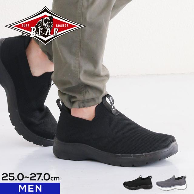 スニーカー メンズ 高校生 スリッポン メンズ ウォーキングシューズ メンズスニーカー 黒 スリッポンスニーカー 歩きやすい 軽量 軽い 人気 おしゃれ 通学 通勤 靴 ブラック グレーベアーサーフボード BEAR SURF BS-1058