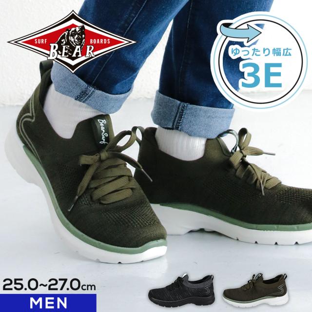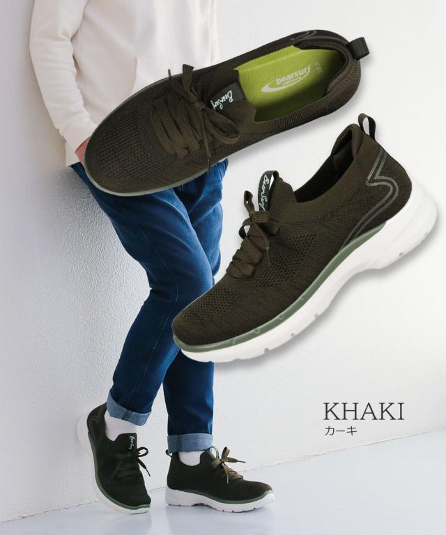 スニーカー メンズ 高校生 スリッポン メンズ ニットスニーカー ウォーキングシューズ メンズスニーカー 黒 スリッポンスニーカー 歩きやすい 軽量 軽い 人気 おしゃれ 通学 通勤 靴 ブラック カーキ BEAR SURF BS-1060