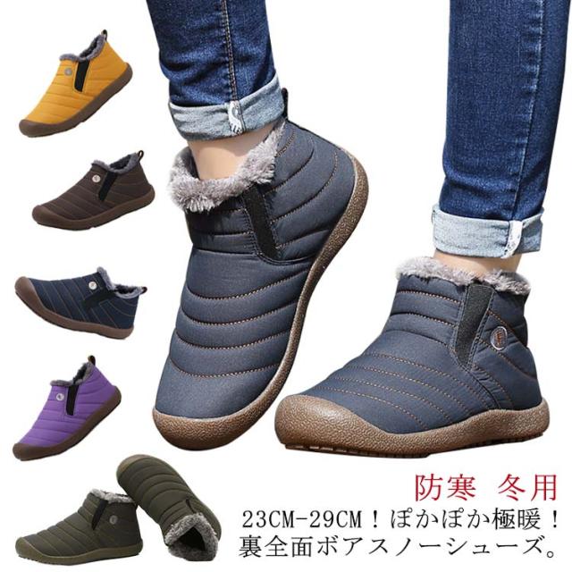 スノーブーツ 大人 メンズ レディース 防寒靴 スノーシューズ 裏起毛 アンクルブーツ スリッポン 撥水 防水 滑らない ムートン 保温 暖かい 冬靴 防寒 アウトドア 雪用靴 綿靴 滑らない 軽量 コンフォートシューズ カジュアル アウトドア