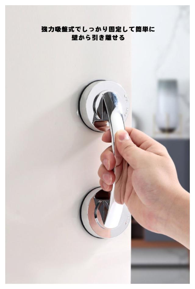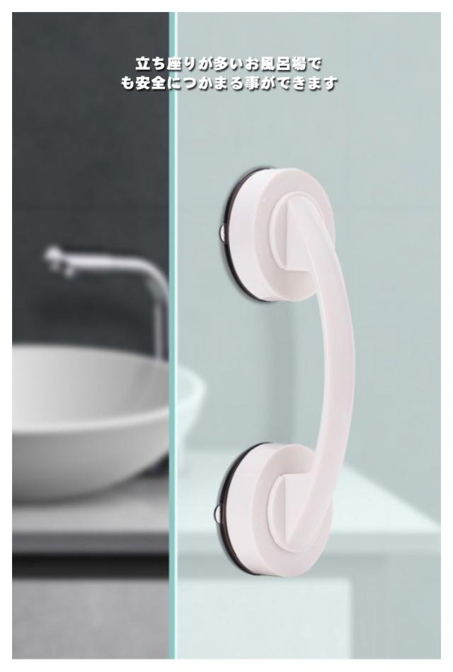 | 壁に押し付けながらレバーを引くだけで真空状態になった吸盤が強力に張り付く補助ハンドル 強力吸盤式でしっかり固定して簡単に壁から引き離せる。 上部レバーを開いてスポッと取り外し可能です。 立ち座りが多いお風呂場でも安全につかまる事ができます。 シンプルでモダンなデザインでどんな場所でも違和感なくマッチします | |