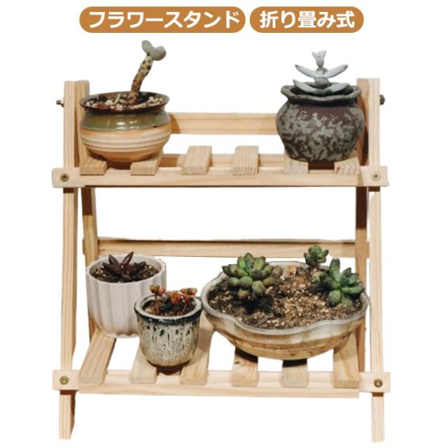 フラワースタンド 折り畳み式 植木台 プランタースタンド デスク上置棚 花台 園芸ラック 観葉植物スタンド 鉢スタンド 木製 二段 鉢置き台 室内 室外 花屋 オフィス リビング ベランダに適用 多機能収納棚 新築祝い プレゼント 35x17x35cm INS 北欧 おしゃれ