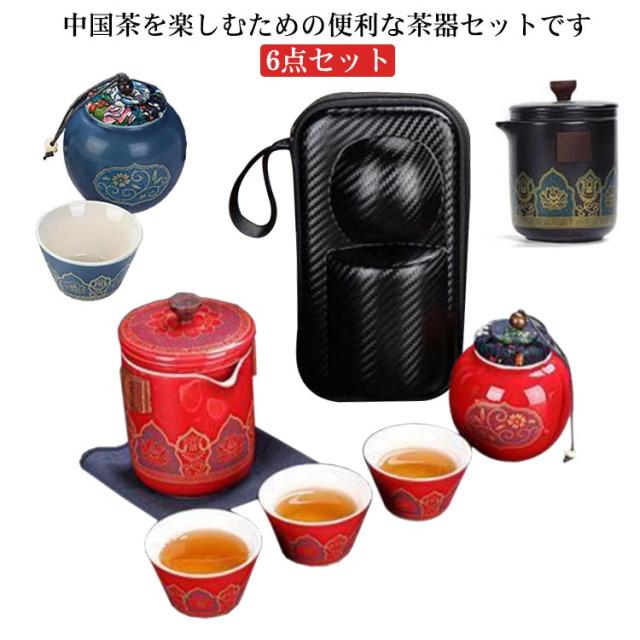 茶器セット 6点セット 煎茶道具 煎茶器セット ポット カップ 茶壷セット 中国茶器セット 湯呑み 急須 陶器 ギフト プレゼント 贈り物 便利グッズ 持ち運び便利 お家 事務所 旅行