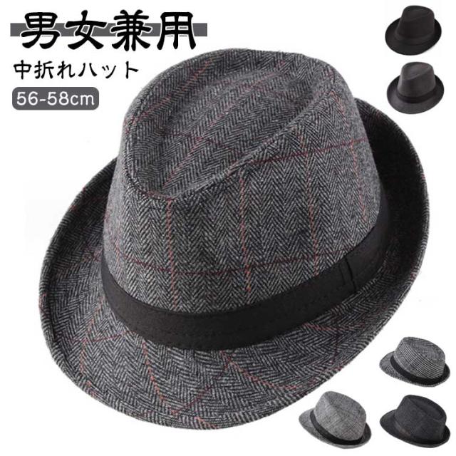 中折れハット メンズ レデイース ラシャ 帽子 中折れ帽 春 秋 冬 レザー チェック柄 カラーバリー シンプルメルトン中折れ ハット 中折れ ハット メンズ レディース 秋冬 新作 トレンド