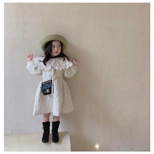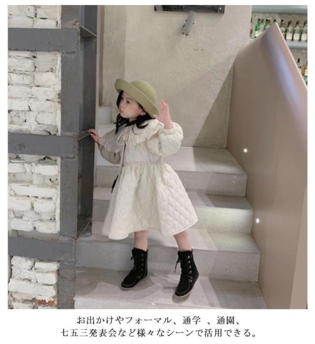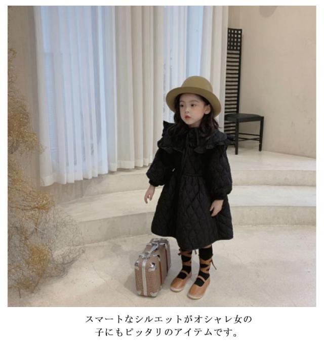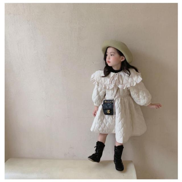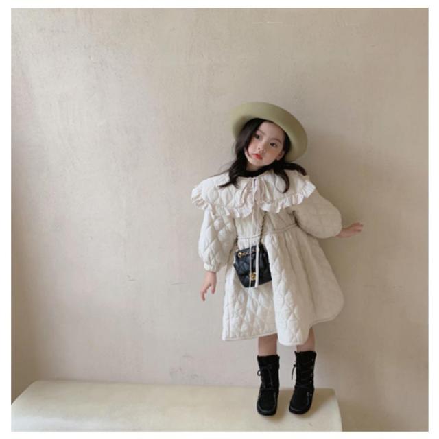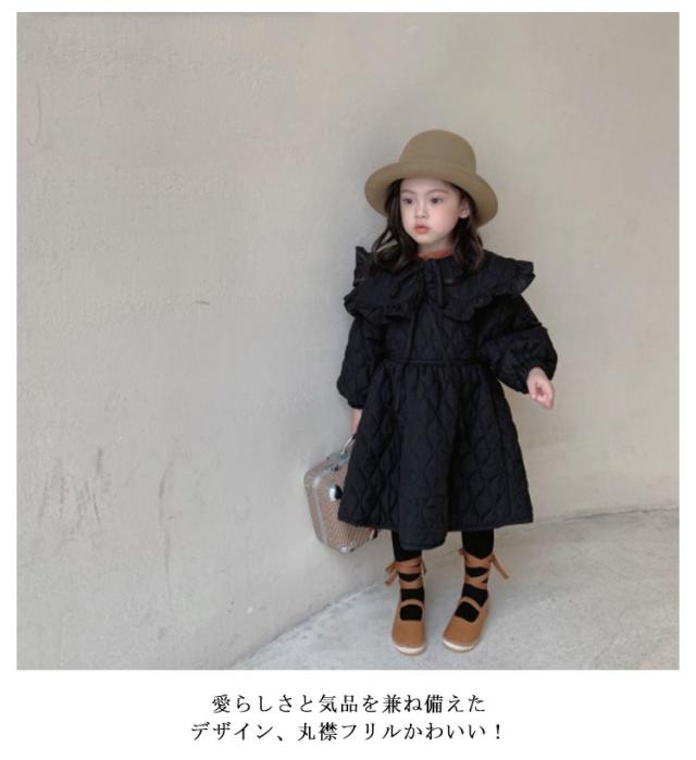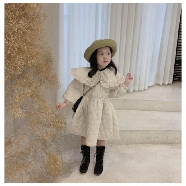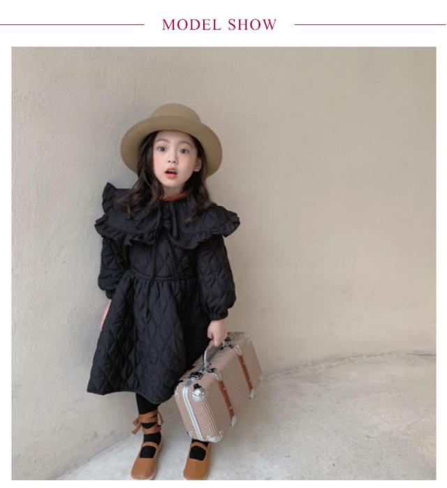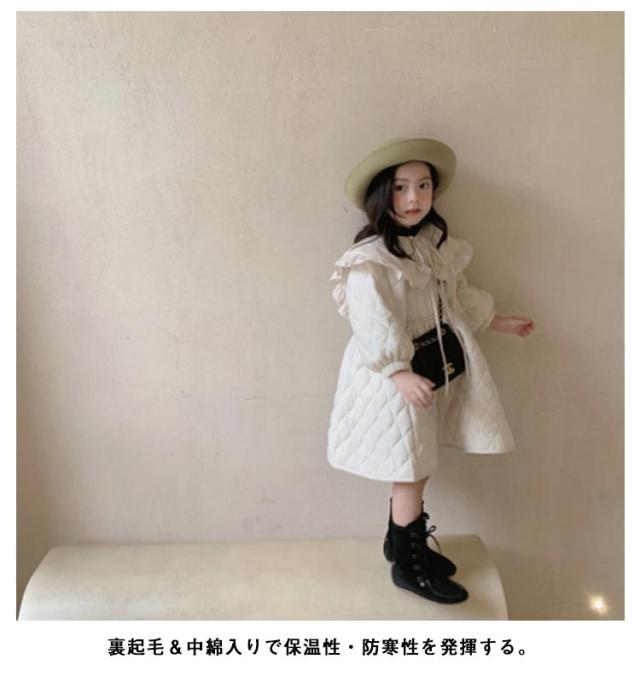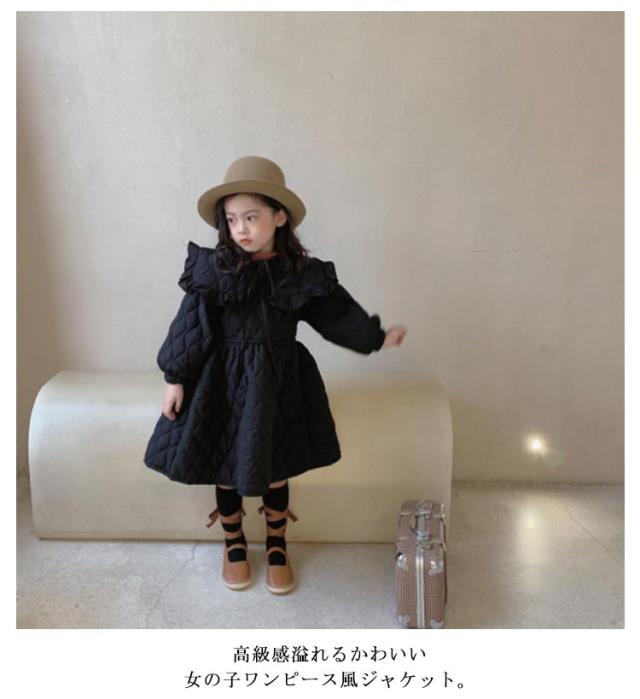 | 高級感溢れるかわいい女の子ワンピース風ジャケット。 愛らしさと気品を兼ね備えたデザイン、丸襟フリルかわいい! スマートなシルエットがオシャレ女の子にもピッタリのアイテムです。 裏起毛&中綿入りで保温性・防寒性を発揮する。 お出かけやフォーマル、通学 、通園、七五三発表会など様々なシーンで活用できる。 | |