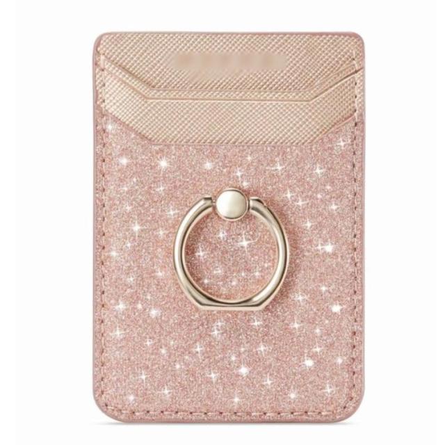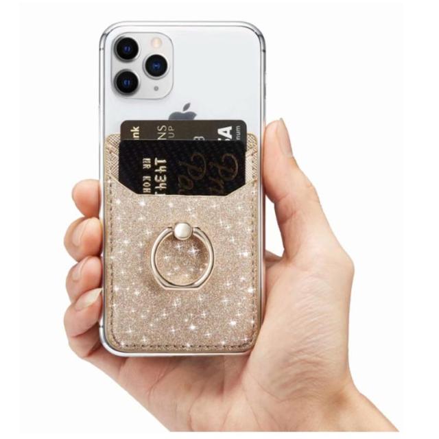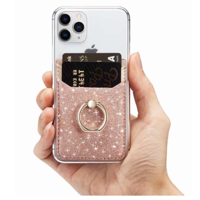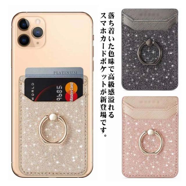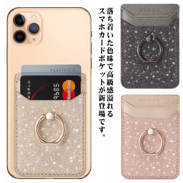 スマホカードポケット 背面ポケット カードホルダー 貼り付け カード収納 PUレザー カード入れ スタンド機能 収納ポケット リング付き 落下防止 全機種対応 スマホアクセサリー お洒落 送料無料