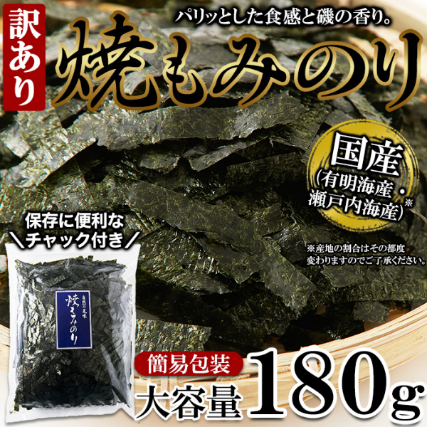 直送品・訳あり 国産焼もみのり 180g×5個セット 焼き海苔 海苔 もみ海苔 きざみ海苔 焼もみのり もみのり 焼海苔 のり わけあり 切れ端 端っこ 日本製 国産 有明海産 瀬戸内海産 おすすめ 人気