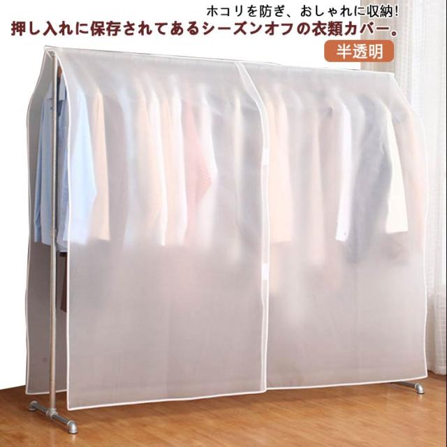 ハンガーラックカバー 衣類カバー 洋服カバー 衣類収納 カバー 半透明 無地 衣類収納 ホコリ 害虫 防止 丈夫 お手入れ 簡単 コートカバー ドレスカバー 防塵カバー 防湿 防虫 防カビ 中身見やすい 厚手 折りたたみ クローゼット用 まとめてカバー