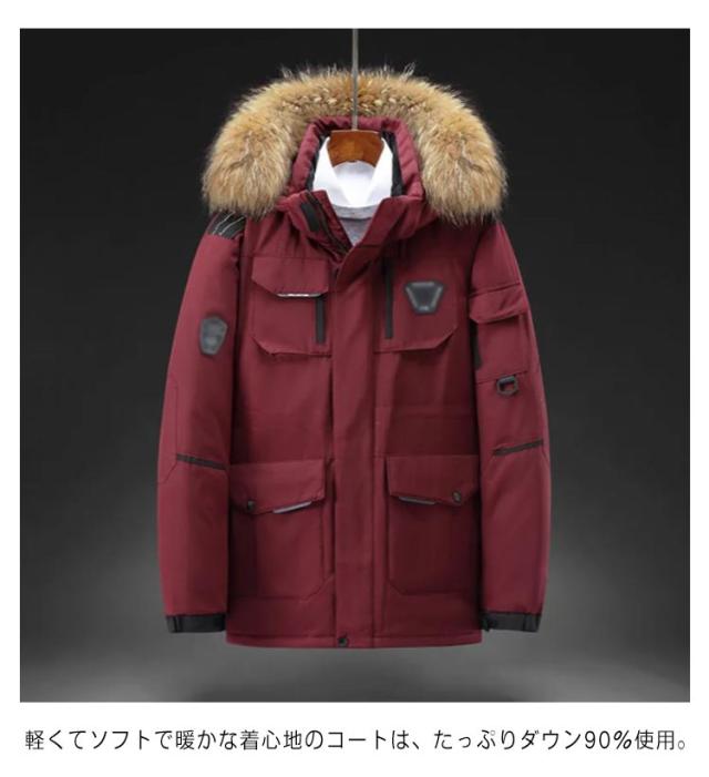 ダウンコート メンズ レディース ダウン90% コート 冬 ダウンジャケット ロングコート 大きめポケット ファー付き ポケット付き ファー 取り外し可能 アウター ジャンパー 前開き 厚手 暖かい 防寒 撥水 2WAY カジュアル 通学 通勤 男女兼用 韓国風 大きいサイズ