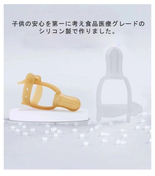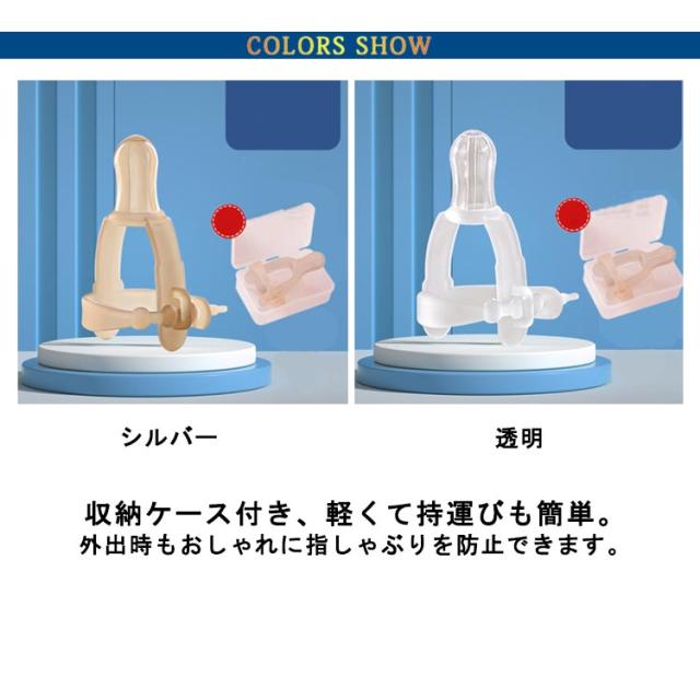 | 指しゃぶり防止 矯正器。 子供の安心を第一に考え食品医療グレードのシリコン製で作りました。 短い時間で、指を吸う悪い習慣が変わります。 汚れても簡単に洗えて清潔。 収納ケース付き、軽くて持運びも簡単。外出時もおしゃれに指しゃぶりを防止できます。 | |