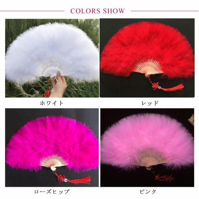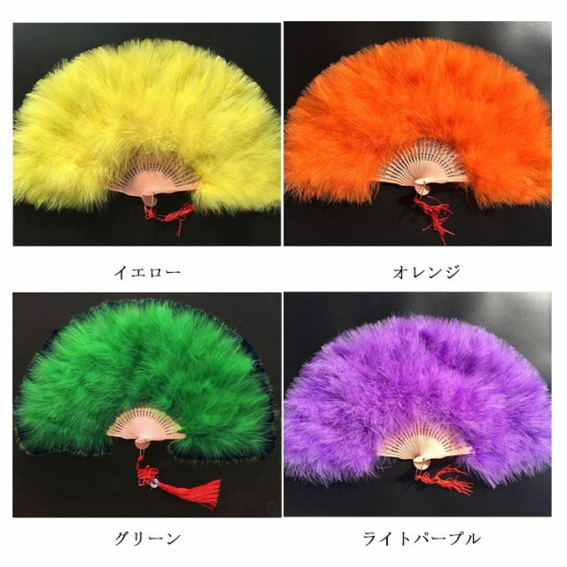 | ダンスの舞台演出にピッタリなとてもふわふわした羽のついた扇子です。 軽量だから扇子を振っても疲れない。羽根が抜けにくい、女性にもやすい! 毛質もよく、沢山の羽根がついて、ふぁふぁしておりますので、そのボリューム感に大満足いただいております。非常に柔らかで触り心地バツグンです。 忘年会・新年会・イベントの余興アイテムに! | |
