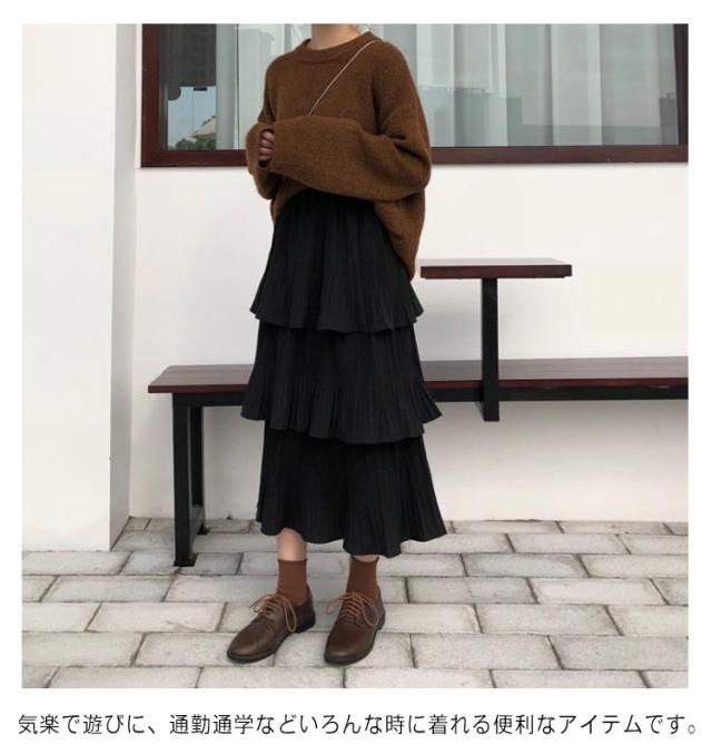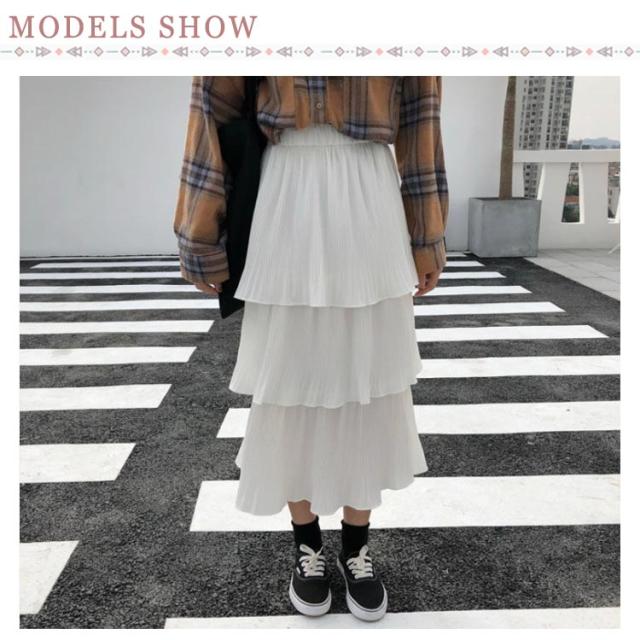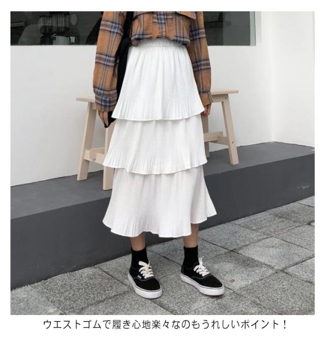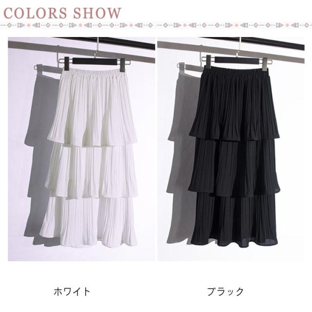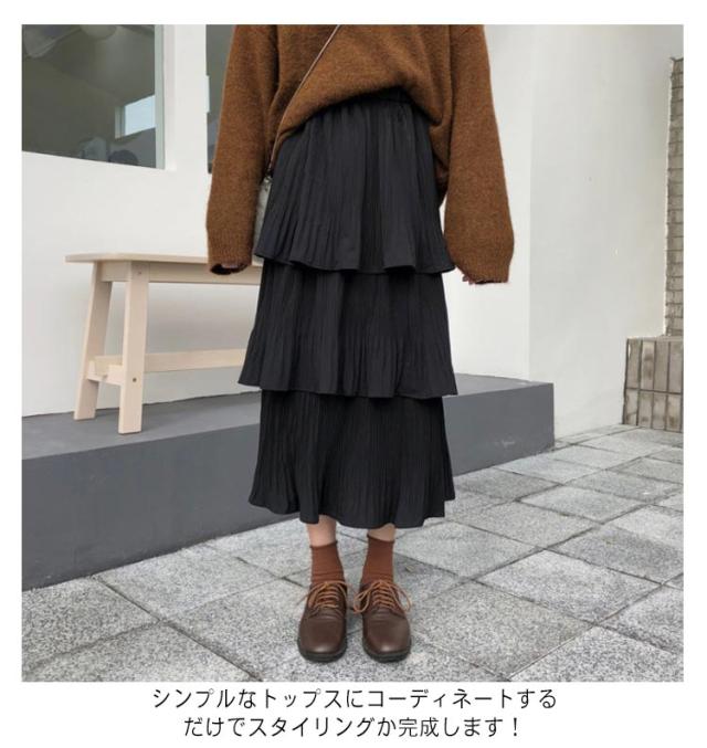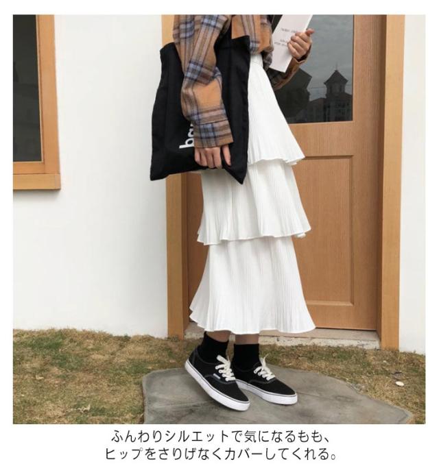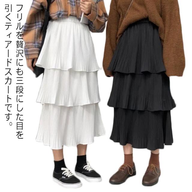 ティアードスカート スカート レディース ロングスカート フレアスカート ハイウエスト Aライン プリーツスカート 3段フリル ボトムス 体型カバー オールシーズン きれいめ おしゃれ カジュアル 可愛い M L XL