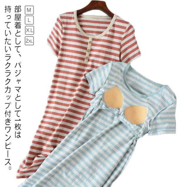 ルームワンピース カップ付き レディース 半袖 パジャマ ルームウエア 春 夏 大きいサイズ ゆったり 旅行用 ネグリジェ 柔らかな肌触り 部屋着 寝巻き 女性 婦人 リラックス ナイトウェア