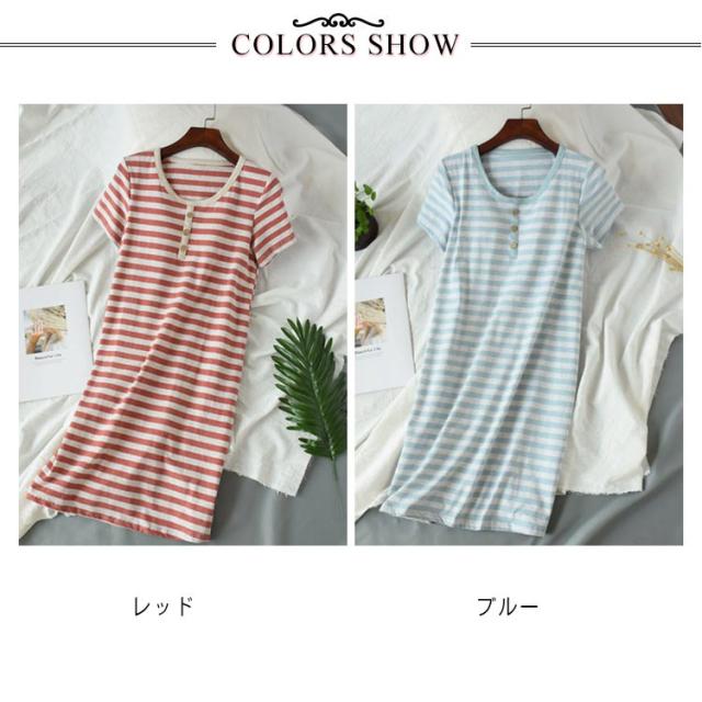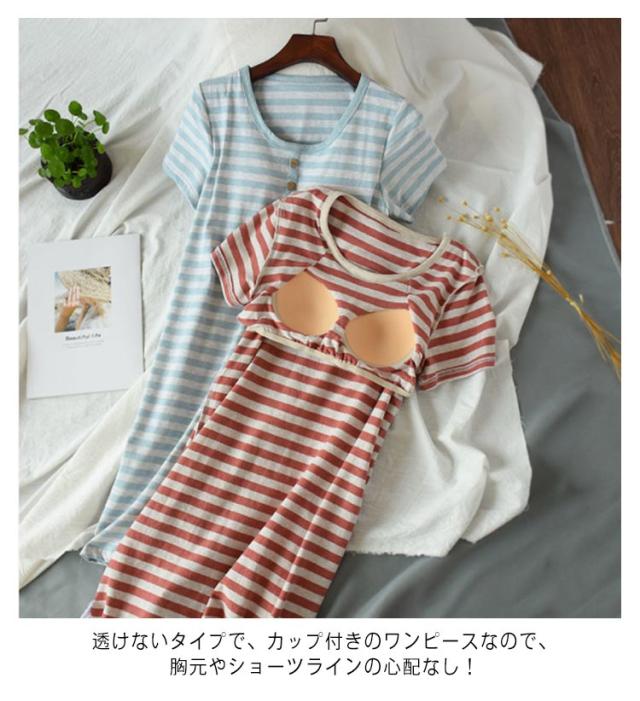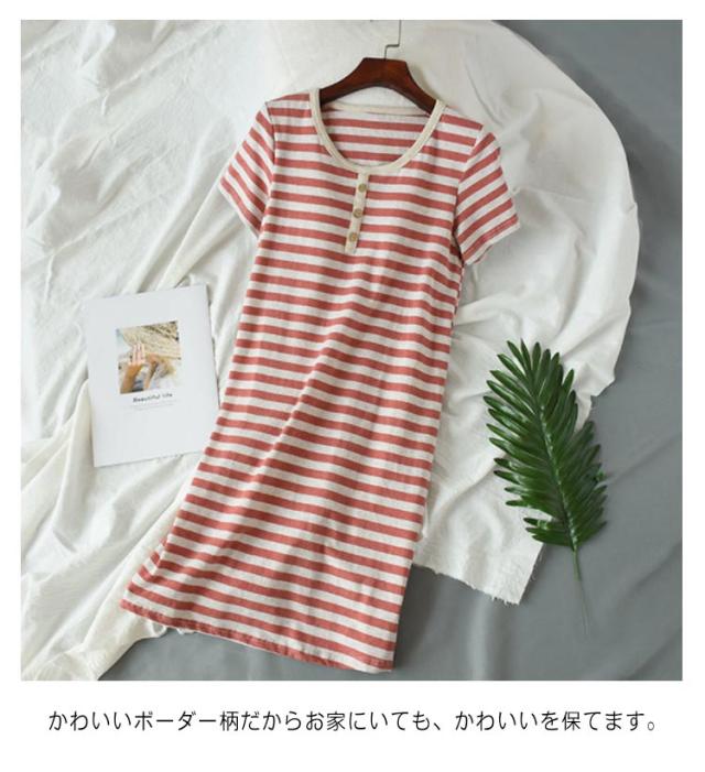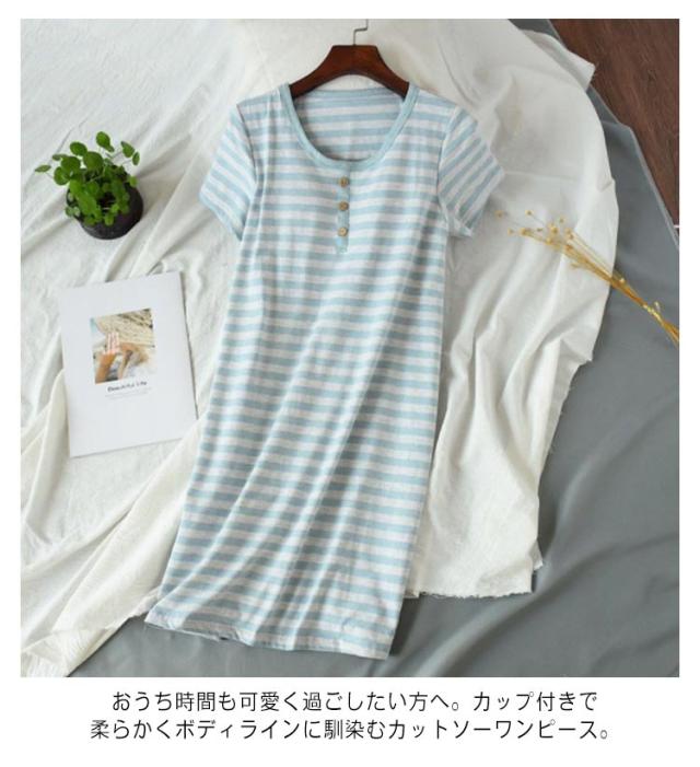 | 部屋着として、パジャマとして1枚は持っていたいラクラクカップ付きワンピース。 かわいいボーダー柄だからお家にいても、かわいいを保てます。 ルームウェアはもちろん、ちょっとしたお出かけにもお使いいただけます。 透けないタイプで、カップ付きのワンピースなので、胸元やショーツラインの心配なし! おうち時間も可愛く過ごしたい方へ。カップ付きで柔らかくボディラインに馴染むカットソーワンピース。 パジャマとしてももちろんお使い頂けます。 家族、友達でもプレゼント用としても大活躍ルームウェアです。長めの丈で急な来客でも安心です。 | |
