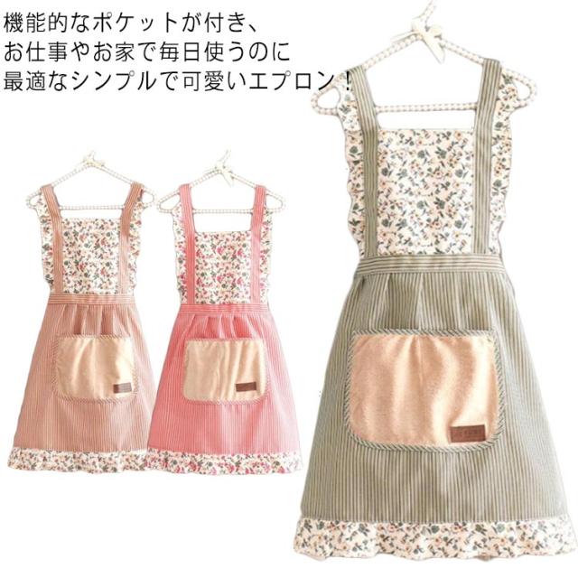 エプロン おしゃれ ワンピースエプロン フリルエプロン 可愛い きれいめ 花柄 ストライプ 胸当てエプロン 前掛け H型 ドレスエプロンカフェ ユニフォーム 花屋 女性用 北欧風