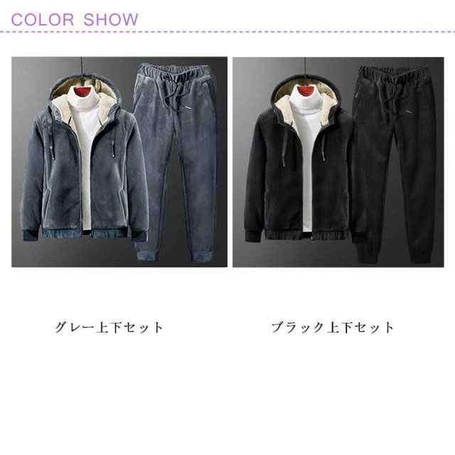 上下 ジャージ メンズ セットアップ あったか スウェット 裏起毛 上下セットアップ 秋冬 ジップアップ 部屋着 フード付き スポーツウェア トレーニングウェア ランニングウェア 黒 ブラック グレー